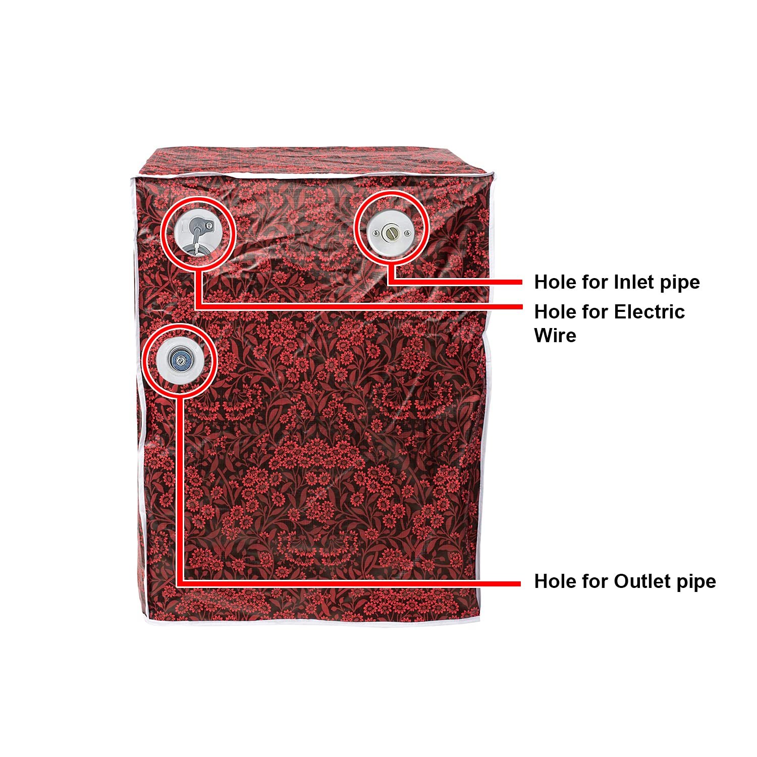 Holes provided for inlet Pipe, Outlet pipe and Power Cord. Water Proof and Dust proof Cover.