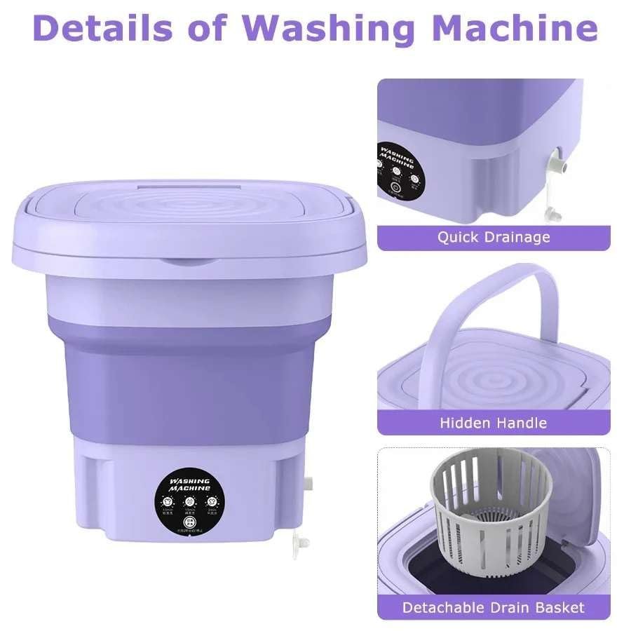 Portability and Convenience: Take this portable washing machine anywhere—ideal for travel, camping, or any situation where access to a standard washing machine is limited.