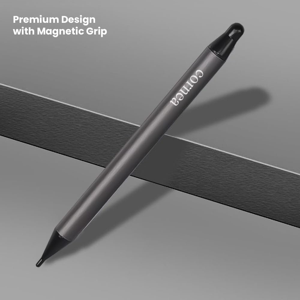 Experience the perfect blend of style and durability with Cornea stylus pens, expertly crafted from lightweight Metal for long-lasting performance. Unlike flimsy plastic alternatives that can easily succumb to damage from daily use or curious kids, our stylus pens are built to withstand the demands of frequent use, making them an ideal choice for extended work sessions on your touch screen devices. Enjoy effortless writing and drawing with the iPad pencil, designed for comfort and precision. Say goodbye to hand cramps and smudged screens! Our pencil glides smoothly over your touch screen without scratching it, providing a seamless writing experience that’s easy on the hands. Perfect for extended use, it eliminates fatigue and smudging, making creativity and productivity a breeze Safeguard your valuable smart device with our thoughtfully designed digital pen! The unique tip featuring a shock-absorbing disk acts as a protective barrier, preventing scratches and cracks on your screen. Plus, we’ve got you covered with an additional replacement tip, ensuring uninterrupted performance and peace of mind. Write, draw, and create with confidence, knowing your device is protected from damage. Create without interruption! Unlike battery-operated alternatives, our stylus requires no charging, ensuring that your creative flow isn’t disrupted by a dead battery. With a longer lifespan and no need for replacement batteries, our stylus is designed to keep up with your imagination, allowing you to focus on what matters most – bringing your ideas to life! Universal compatibility meets versatility with our Cornea stylus pens! Designed to seamlessly work with a wide range of devices, including: – Touch screens – Interactive Panel iPad (including iPad Pro) – Tablets – Android phones
