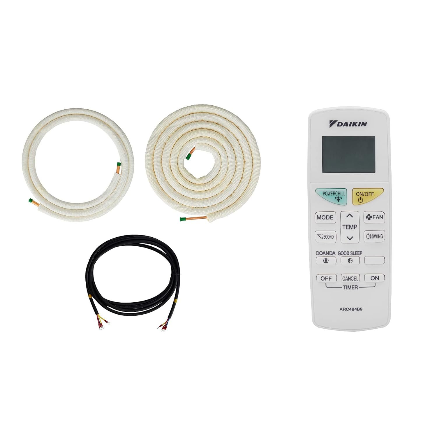 1 Indoor Unit, 1 Outdoor unit, 1 Remote Controller, 3 Mtr. Length Inter Connecting Copper Coil Pipe, 1 Mounting plate, 2.95 Mtr. Insulation Pipe, 3.7 Mtr. Connecting cable (wire), 2 Tie Rap & 9 fixing screws. Scan the QR code on manufacturing label for soft copy of Operational Manual, Installation Manual, Warranty Card, E-Waste Guideline & Wiring Diagram.