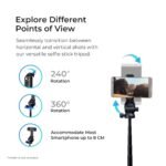 Wireless Remote and 360° Ball Head: Includes a wireless remote with a 10-meter range, allowing you to capture photos and videos remotely. The 360° ball head ensures smooth panning and tilting, enabling shots from various angles with ease.