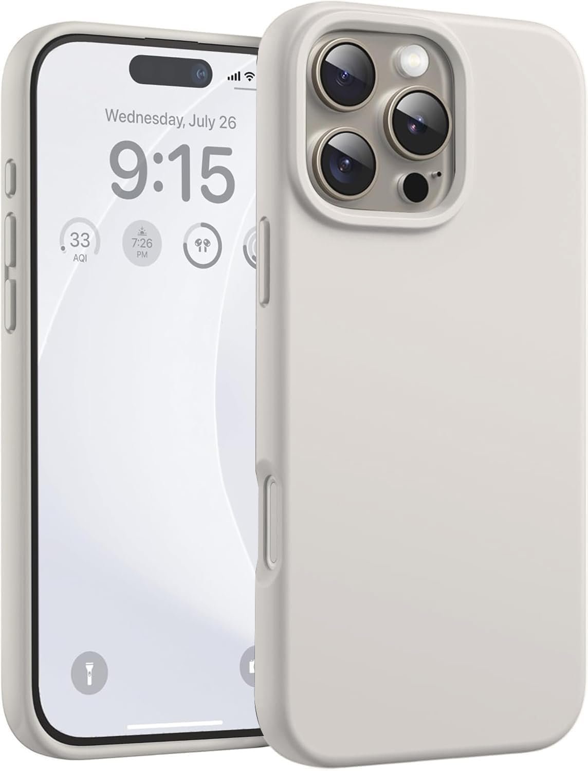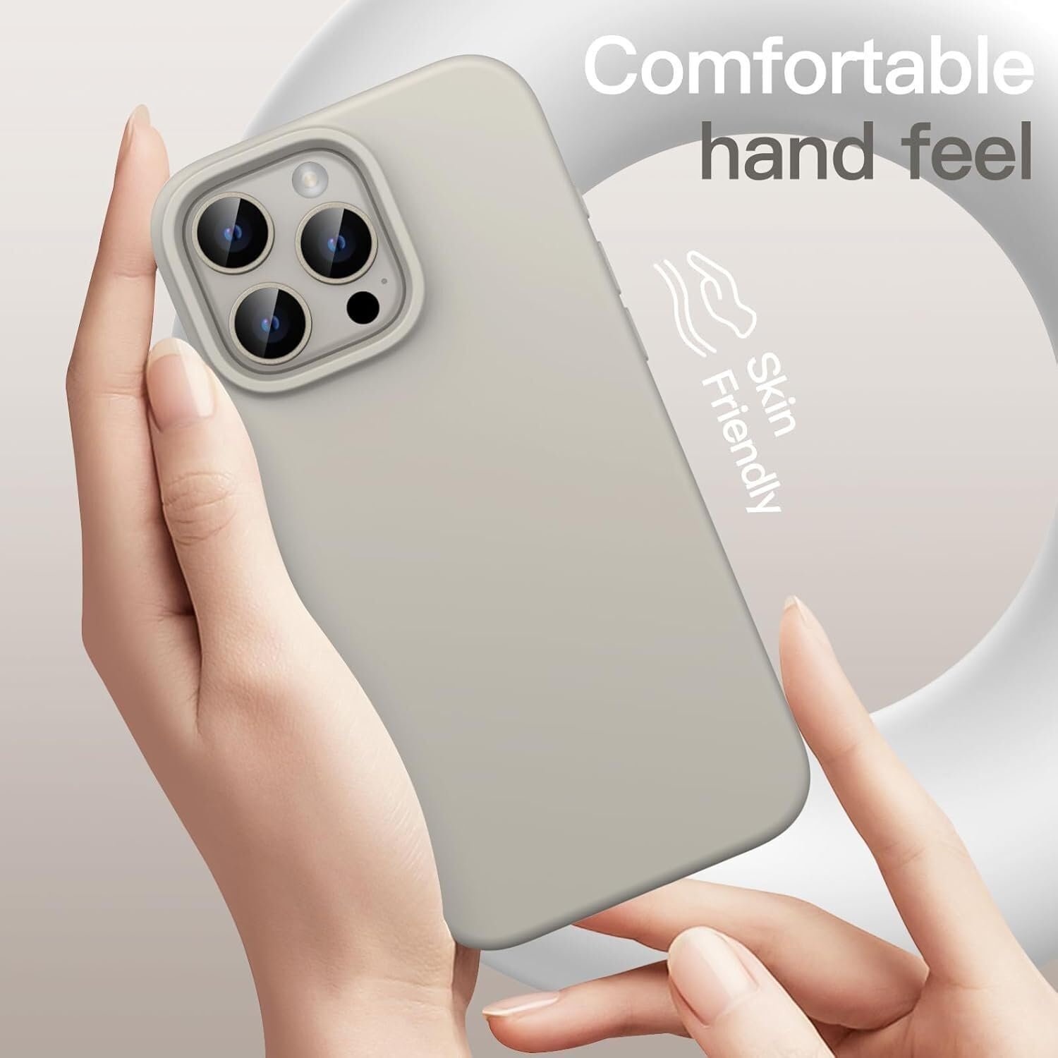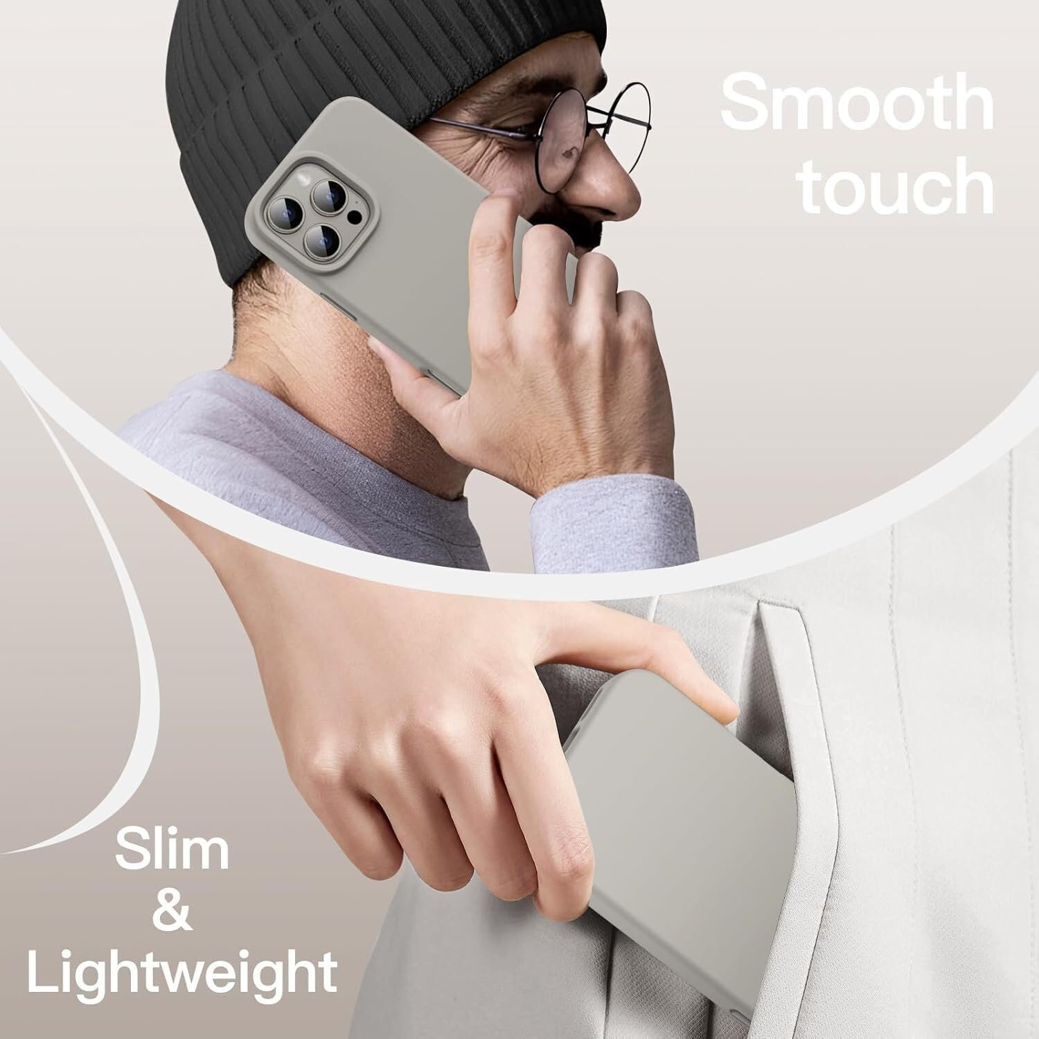 DIZORO Compatible for iPhone 16 Pro Case 6.3, Slim Liquid Silicone 3 Layers Full Covered Soft Gel Rubber Phone Case Protective Cover 6.3 Inch (Stone Grey)