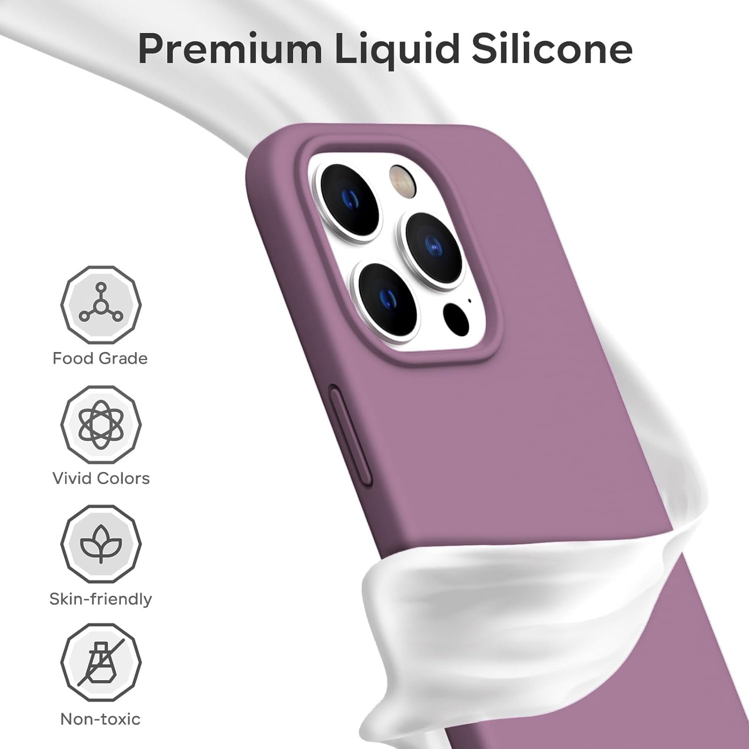 DIZORO Compatible for iPhone 16 Pro Case Slim Liquid Silicone 3 Layers Full Covered Soft Gel Rubber Phone Case Protective Cover 6.3 Inch – Lilac