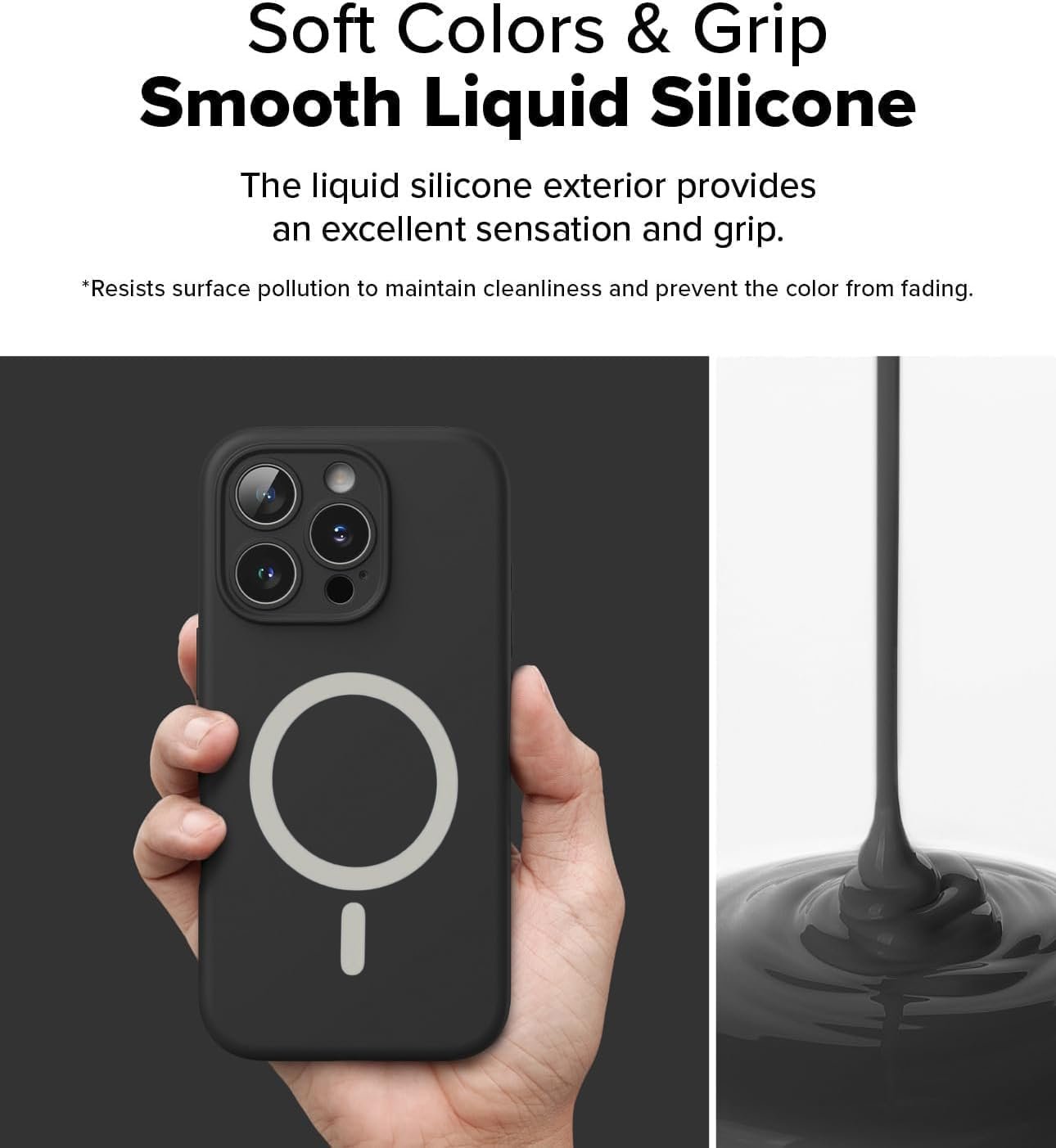 Silky Soft Touch: The iPhone 16 Pro back case is crafted from premium silicone with a silky soft-touch finish that provides a comfortable grip and an elegant look.