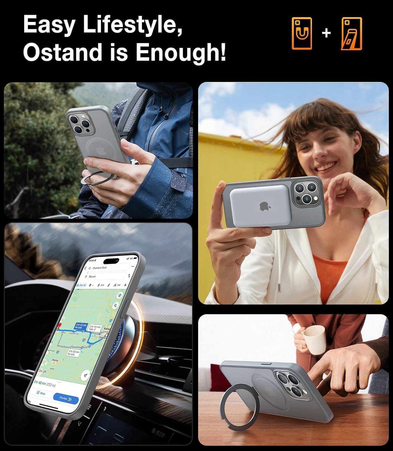 【Redefining Military-Grade Drop Protection】Based on 5000+ extreme drop resistance tests, the MagicStand case’s DURABILITY AND STURDINESS surpass most general phone cases. Furthermore, the shockproof polycarbonate back and the airbag cushions increase its durability and protect your phone against everyday drops and bumps. A 2.5 mm offset border over the camera opening prevents the lens from being scratched; a 1.5 mm bezel over the screen keeps your iPhone screen from damage.