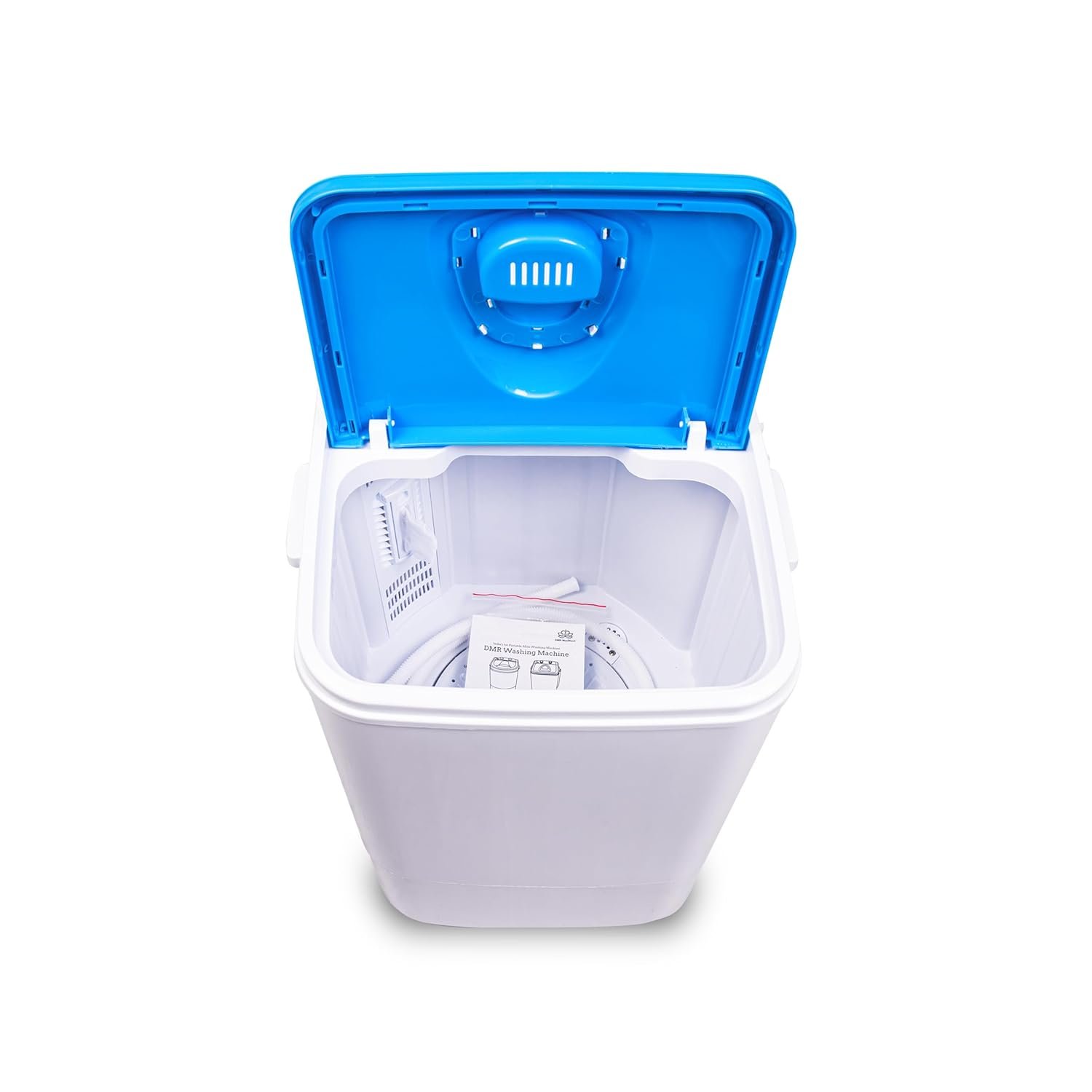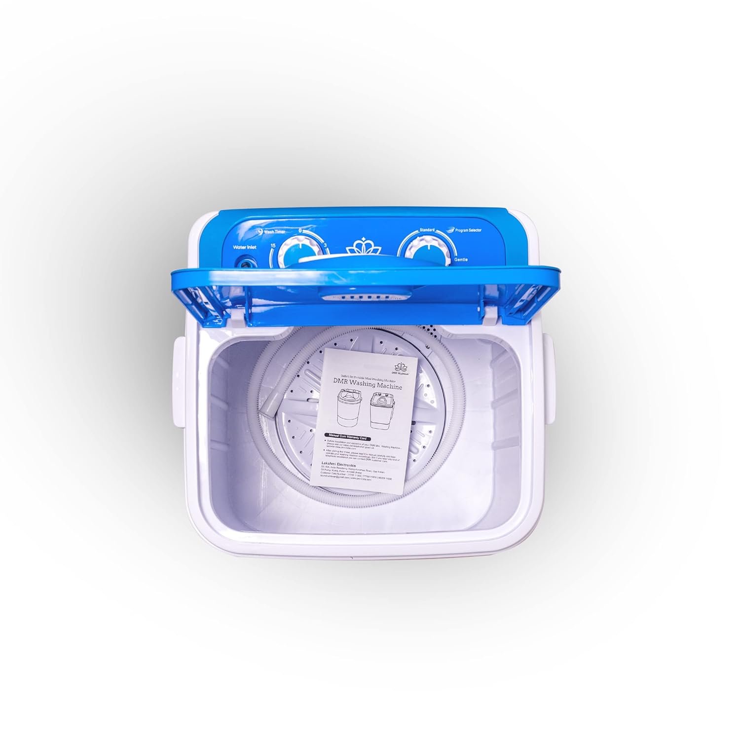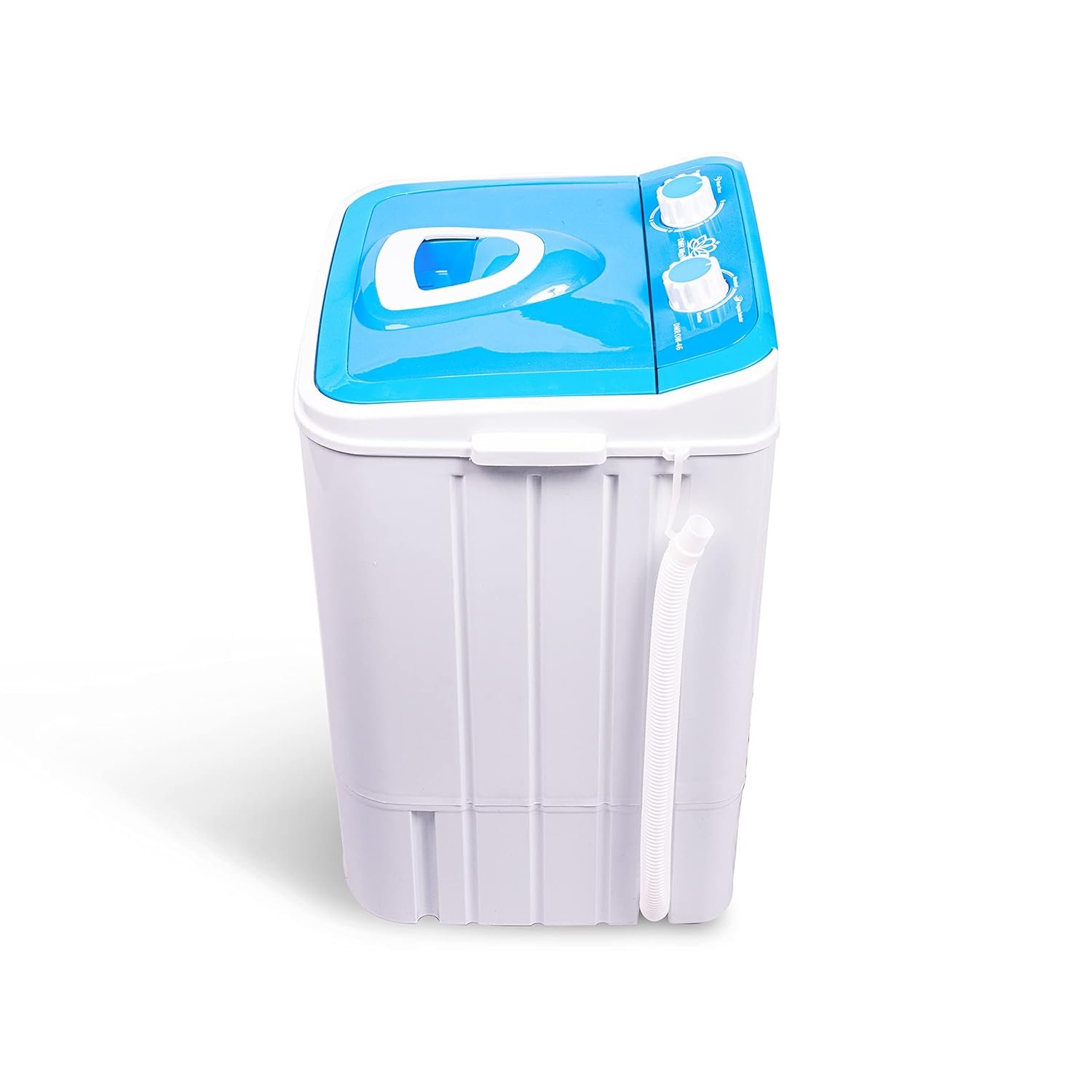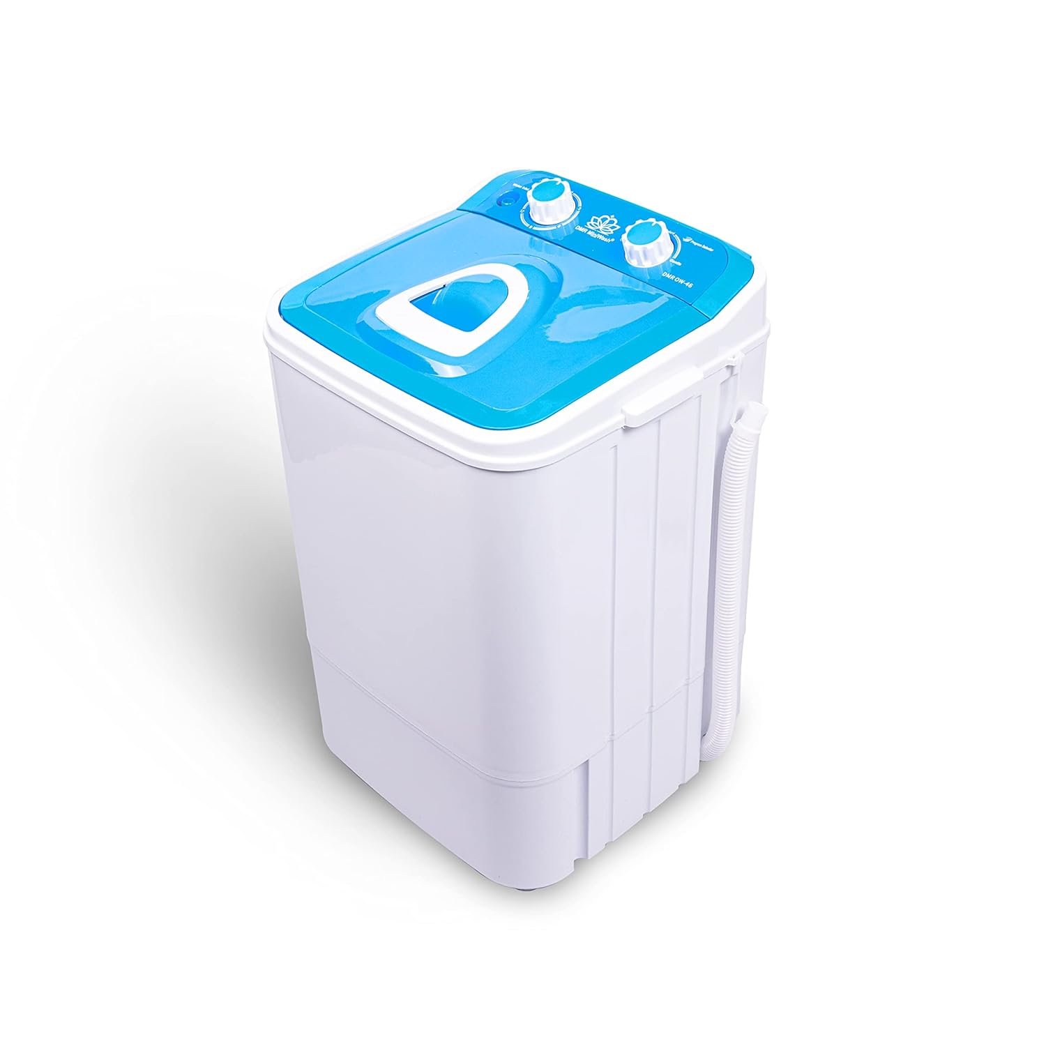 DMR OW-46 Portable 4.6 kg single tub semi automatic washing machine – Only Washer ( No Dryer) Following are the features of this machine: Portable- light weight, small size – single tub washing machine with 4.6 kg Wash Capacity . Low electricity consumption and low water requirements. Wash capacity: 4.6 kg Spin Capacity- Not applicable, Can wash approx 7-8 cloths at a time. 1 year warranty (Free Spare Supply Warranty ), LxWxH – 42x45x66 cms gross, net weight – 9kgs, colour available- Blue. Accessories: Inlet pipe, product manual. Technical Specifications: Wash capacity – 4.6 kgs, Spin capacity – Not Applicable, wash time – 15 minutes, Ac Input – 220v/50hz Wash Power -240 w. knobs – 2 knobs. 1 for wash selector and other for Wash Timer, washing cycles clock wise and anti clockwise type semi automatic washing machine.