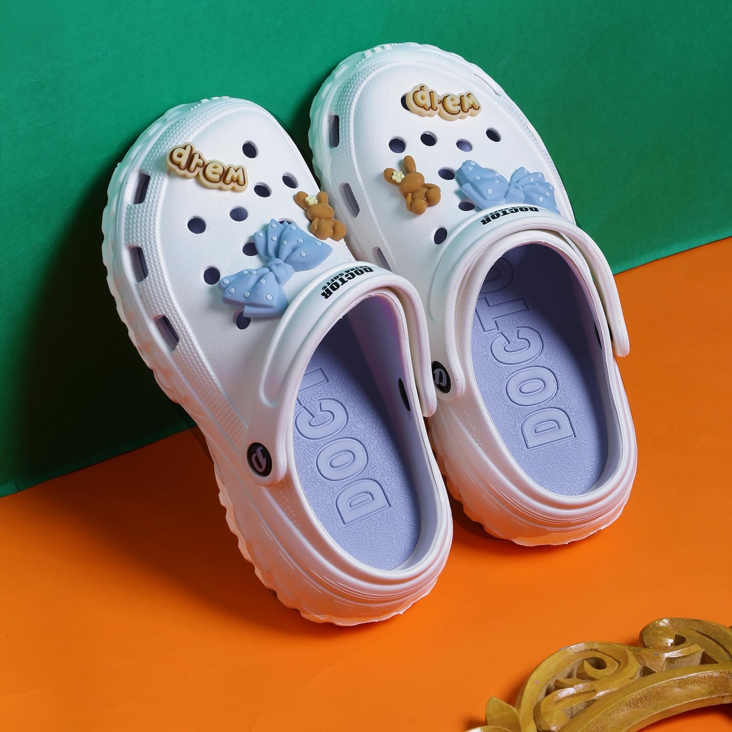 Add these wonderful Doctor Extra Soft Classic Casual Charms Clogs For Women to your Shoe Closet. Brought to you by FAMILY FOOTWEAR, these Clogs/ Sandals are not only lightweight, Durable, and anti-skid but also extremely Comfortable to wear. Now, you can keep your feet comfortable with this pair of Doctor Extra Soft Footwear for Women that have been skillfully crafted to provide optimum support to your ailing Feet. A pair of these molded casual clogs are perfect for all outdoor activities, whether walking around a campsite, gardening at home, or indulging in high-intensity sports. Our Clogs/ Sandals are also the ideal footwear for summer holidays, days beside the water, or in the garden. Their lightweight design makes it perfect to pack into your suitcase, beach bag, gym bag, or water sports kit. These shoes will provide comfort and practicality, keeping your feet cool on a hot day with the air holes molded into the shoe. These Sandals have an adjustable back strap that can be worn at the ankle’s front or rear. The design of these clogs is simple and classic, with a slip-on style that makes them easy to wear and remove. These clogs are made with water-resistant material, making these clogs perfect for wear in wet conditions. Simple and Classic Charms Clogs are the most comfortable shoes for women and are easy to clean by just using soap and water and allowing for a quick dry.