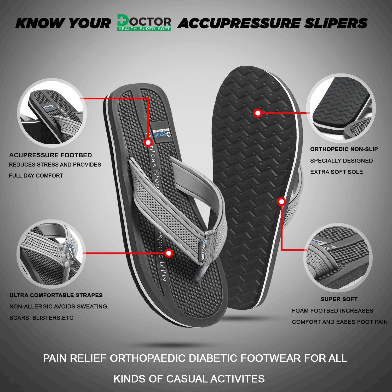 DOCTOR HEALTH SUPER SOFT Men’s Acupressure Slippers | Flip-Flops | Men’s & Boy’s Slippers | Comfortable & Lightweight | Soft Foot Massager | All Day Wear Acupressure Slipper