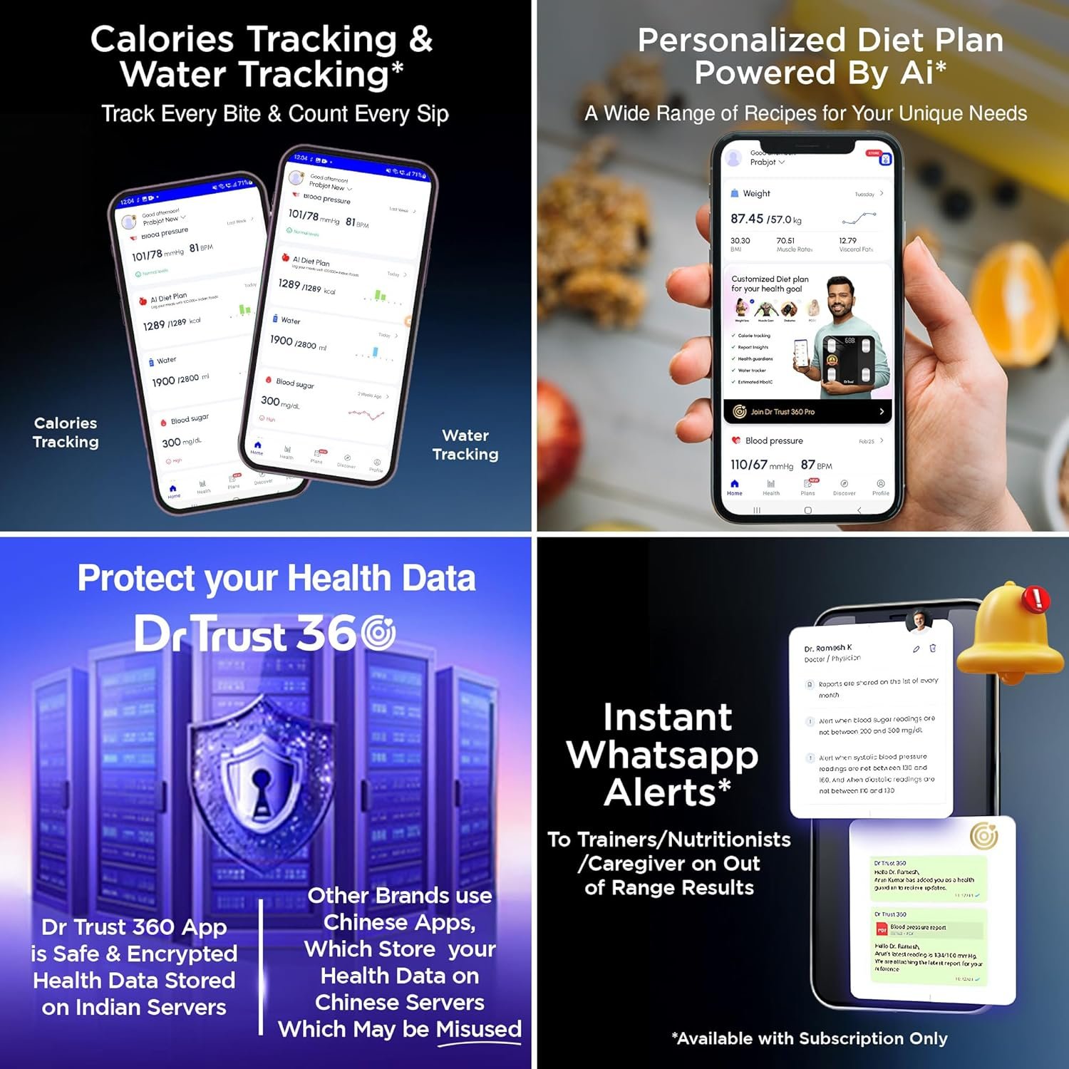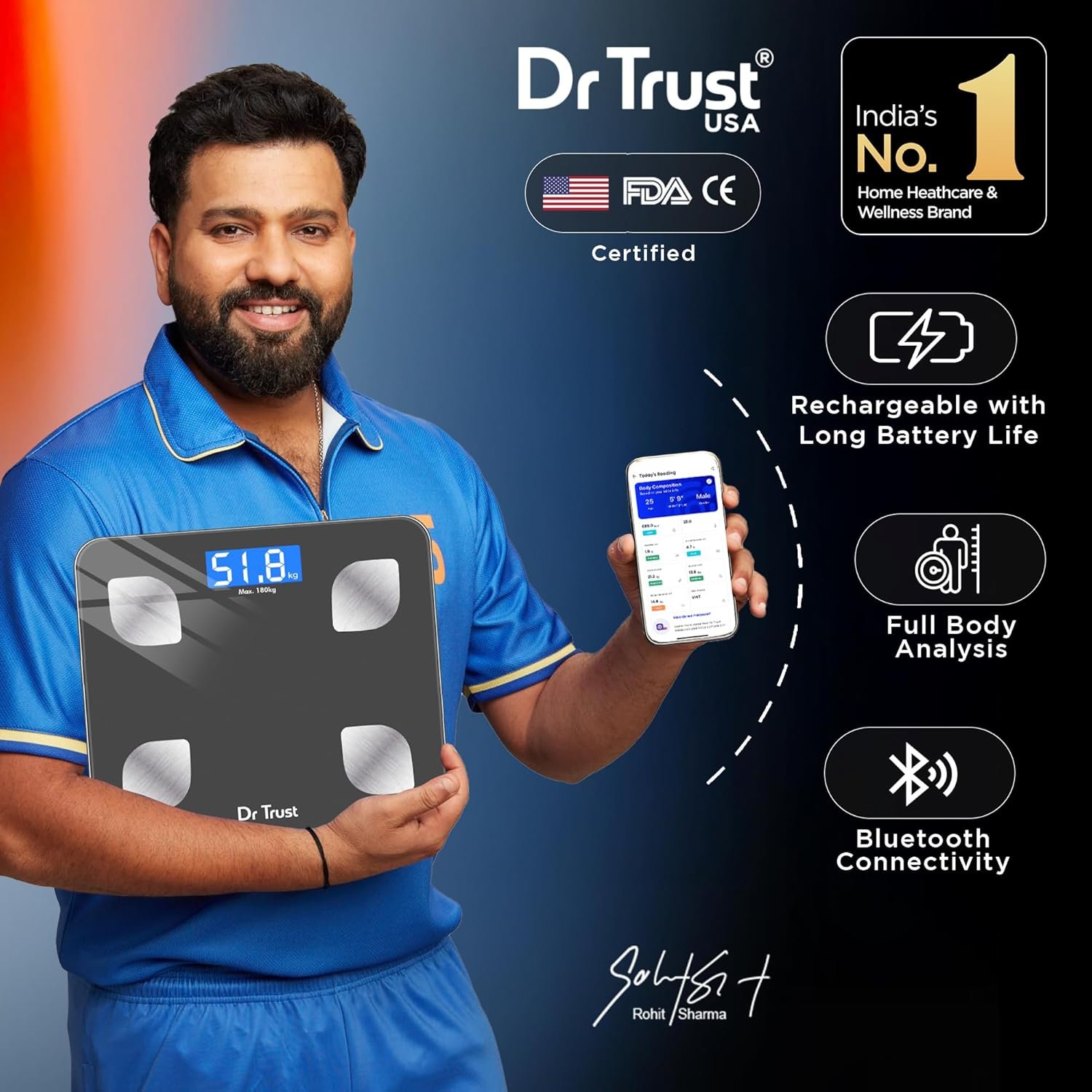 MULTIPLE USERS DATA ON YOUR PHONE: Your family members and friends can use the same scale as it syncs the data of 8 users with their profile, date and time. The smart scale works with an app and compatible with Android and iPhone. CONVENIENT TO USE: Powers on automatically when you step on it and displays your body weight on an easy to view and read large LCD screen without connecting to your mobile device. Connect it with phone by downloading app to sync data. ACHIEVE YOUR FITNESS GOALS: With the Dr Trust Smart Body Fat & Composition Scale 505 you can track your body weight with overall fitness monitoring. It tracks your progress over days and weeks to give you an insight of everything on your phone.