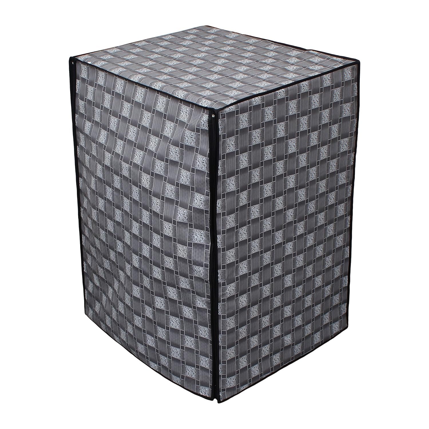 Customers find the washing machine cover to be of good quality, with excellent material that’s thick enough for daily handling, and appreciate its waterproof and dustproof properties. The cover fits well, particularly for 8 kg front-loading machines, and customers consider it worth the price. The design receives positive feedback for its beautiful appearance, though opinions about size are mixed, with some finding it perfect while others say it’s small. Durability is mixed, with some customers reporting it lasts about a year while others mention it tearing within two months of use.