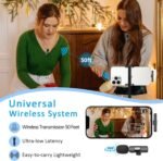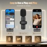 ONE-KEY AUTOMATIC PAIRING – Simply plug the receiver into your phone and turn on the mic — instant connection with no app, no Bluetooth, and no network needed. (If pairing doesn’t succeed, just restart and try again.)