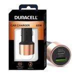 Duracell 65W Fast Car Charger Adapter comes with Dual Output. It comes with Type C PD 45W & Qualcomm Certified 3.0 18W port. The product is Compatible for iPhone, All Smartphones, Tablets & More