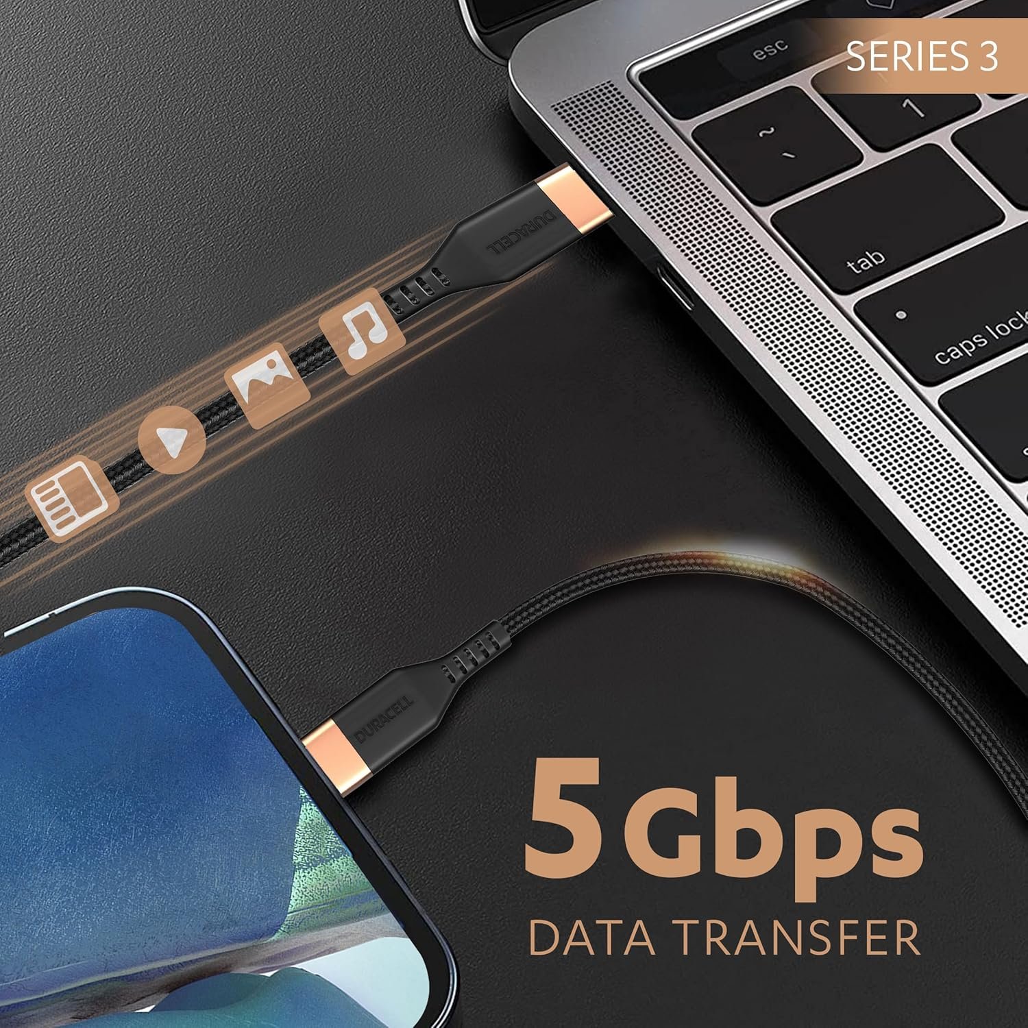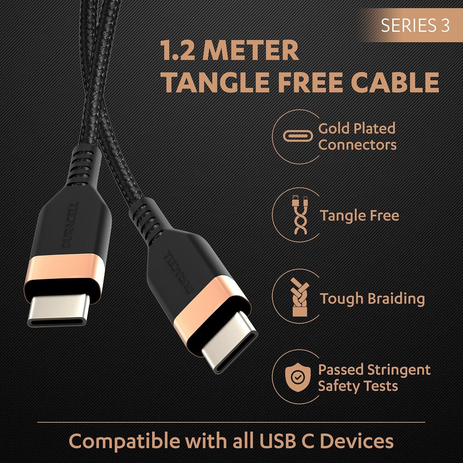DURACELL Type-C To Type-C 1.2M braided Sync & Charge Cable