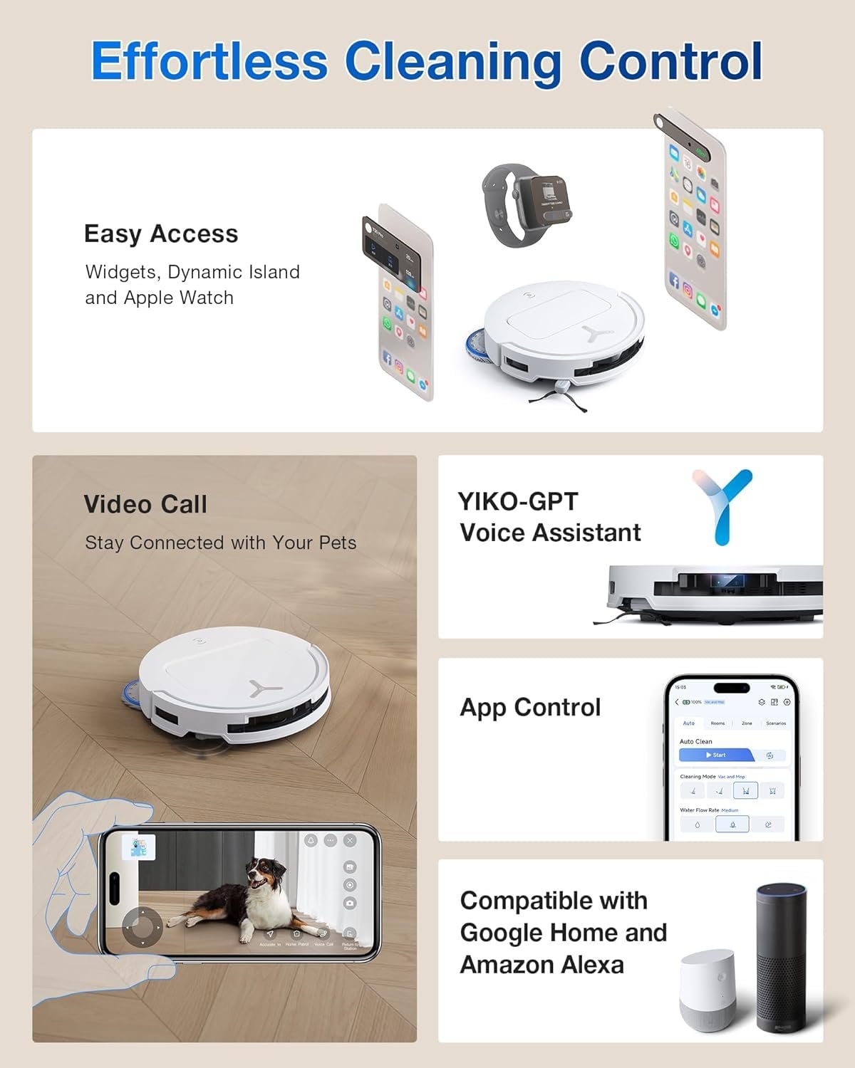 AIVI 3.0 SMART OBSTACLE AVOIDANCE : Powered by AIVI 3.0, this robot avoids obstacles like toys, cables, and socks with the precision of 1mm, using advanced AI that recognizes over 100+ objects for smooth navigation and fewer interruptions.