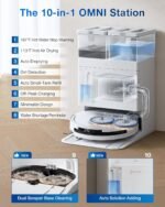 10-IN-1 OMNI STATION FOR EASY MAINTENANCE : Upgrade your cleaning routine with the OMNI Station. It auto-washes mops with 75°C hot water, dries with 45°C hot air in 2 hours, refills water, empties the dustbin, and detects mop dirtiness for thorough cleaning.