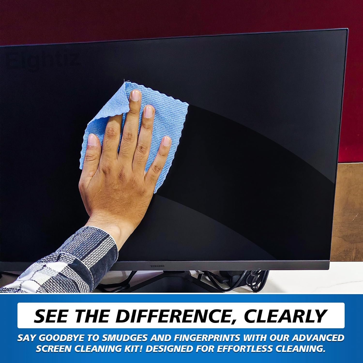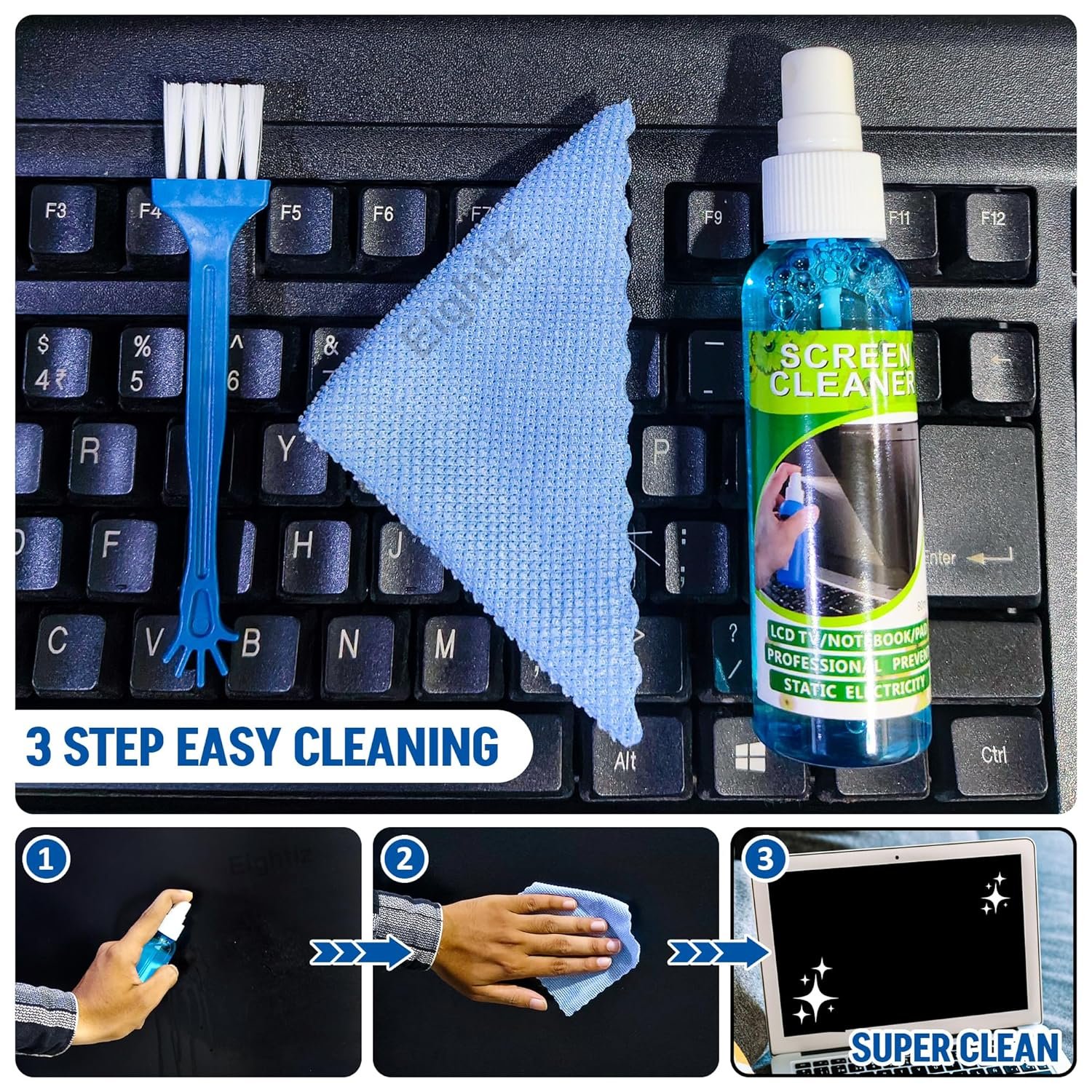 Eightiz (Pack of 1) 3-in-1 Screen Cleaning Kit with Soft Brush & Microfiber Cloth 100ml Cleaner Spray for Laptop, PC, TV & Electronics, Glass, Outdoor