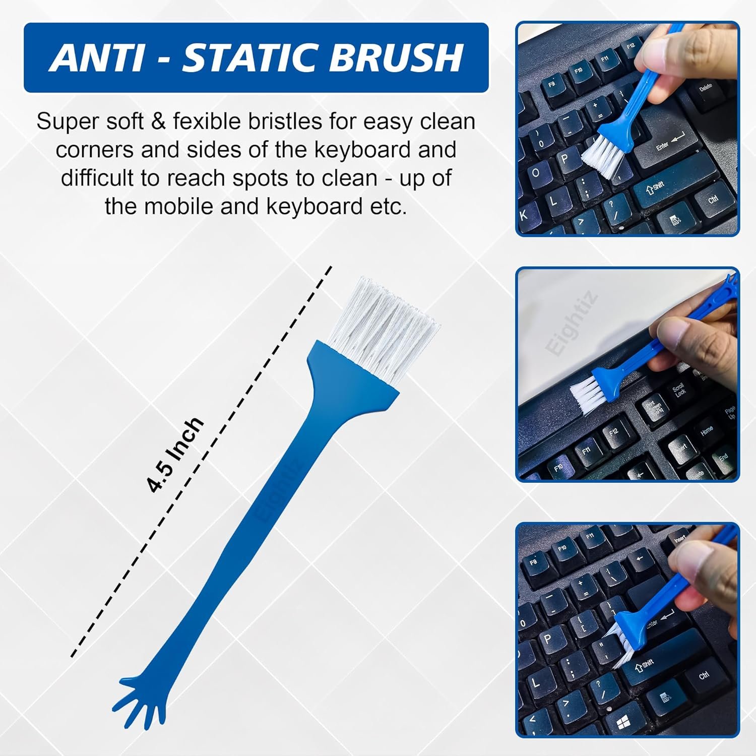 Eightiz (Pack of 1) 3-in-1 Screen Cleaning Kit with Soft Brush & Microfiber Cloth | 100ml Cleaner Spray for Laptop, PC, LED, LCD, Mobile, TV & Electronics,Glass,Outdoor (Blue)