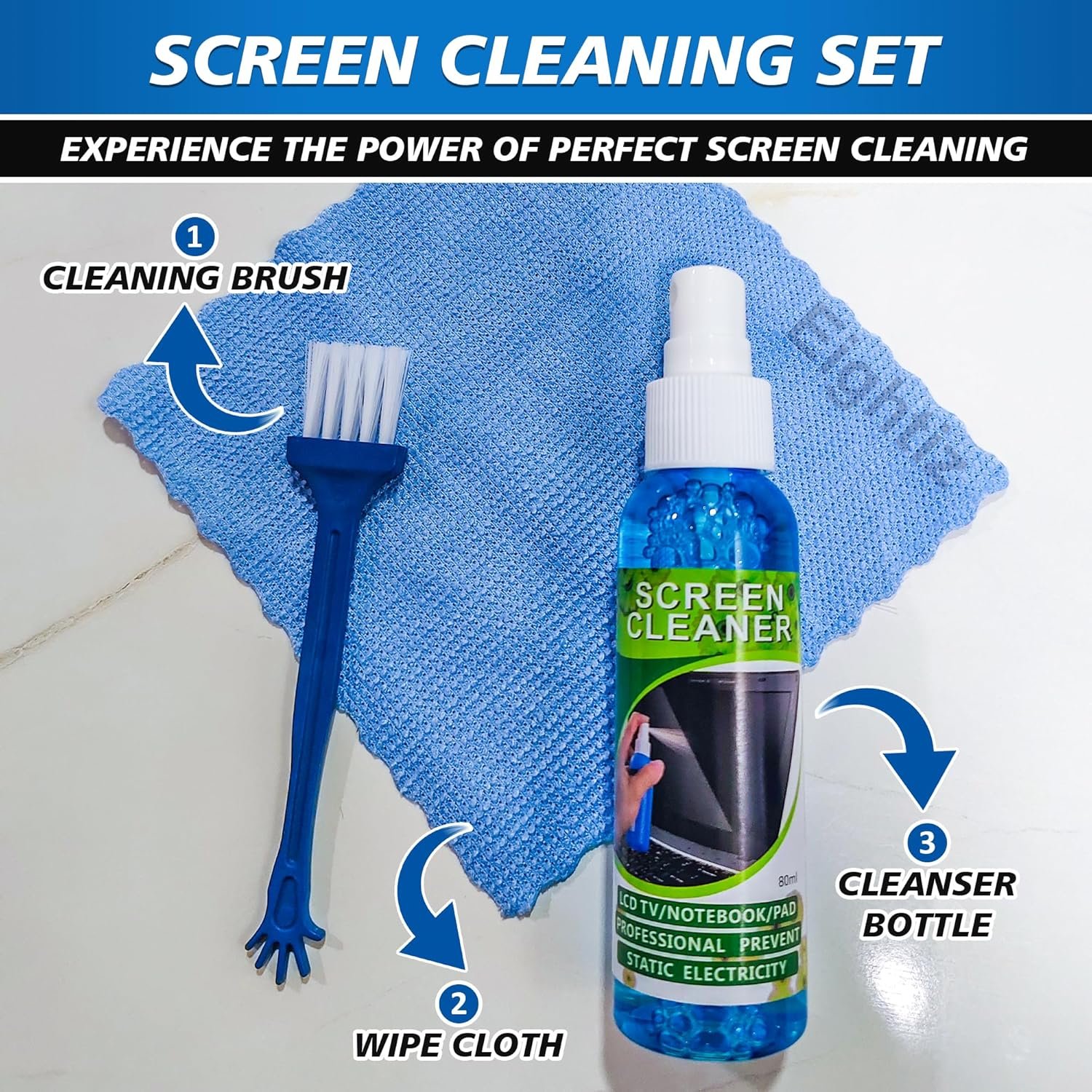 3-in-1 Screen Cleaning Kit with Soft Brush & Cloth | 100ml Cleaner for Laptop, PC, LED, Electronics3-in-1 Screen Cleaning Kit with Soft Brush & Cloth | 100ml Cleaner for Laptop, PC, LED, Electronics