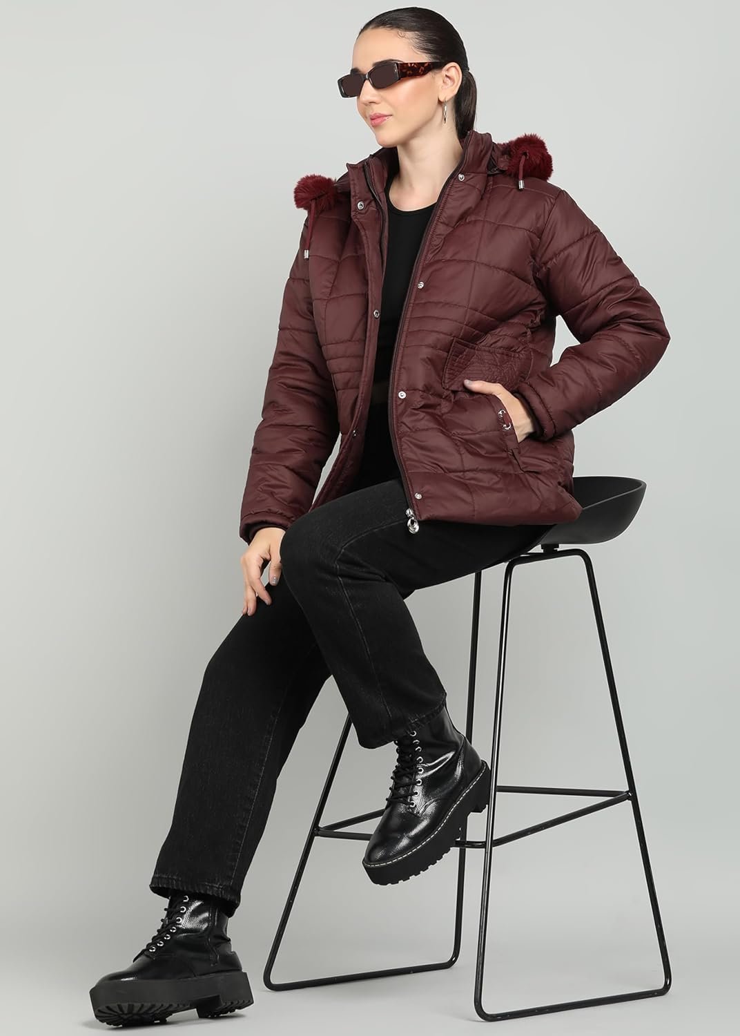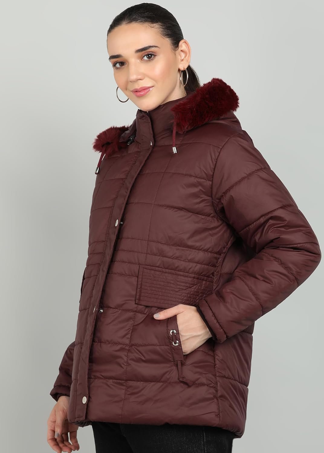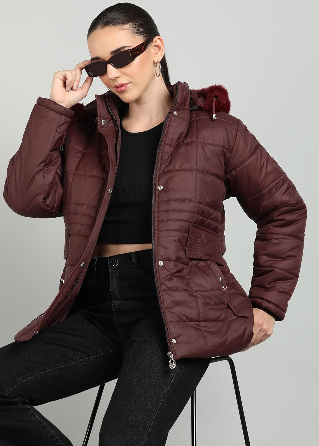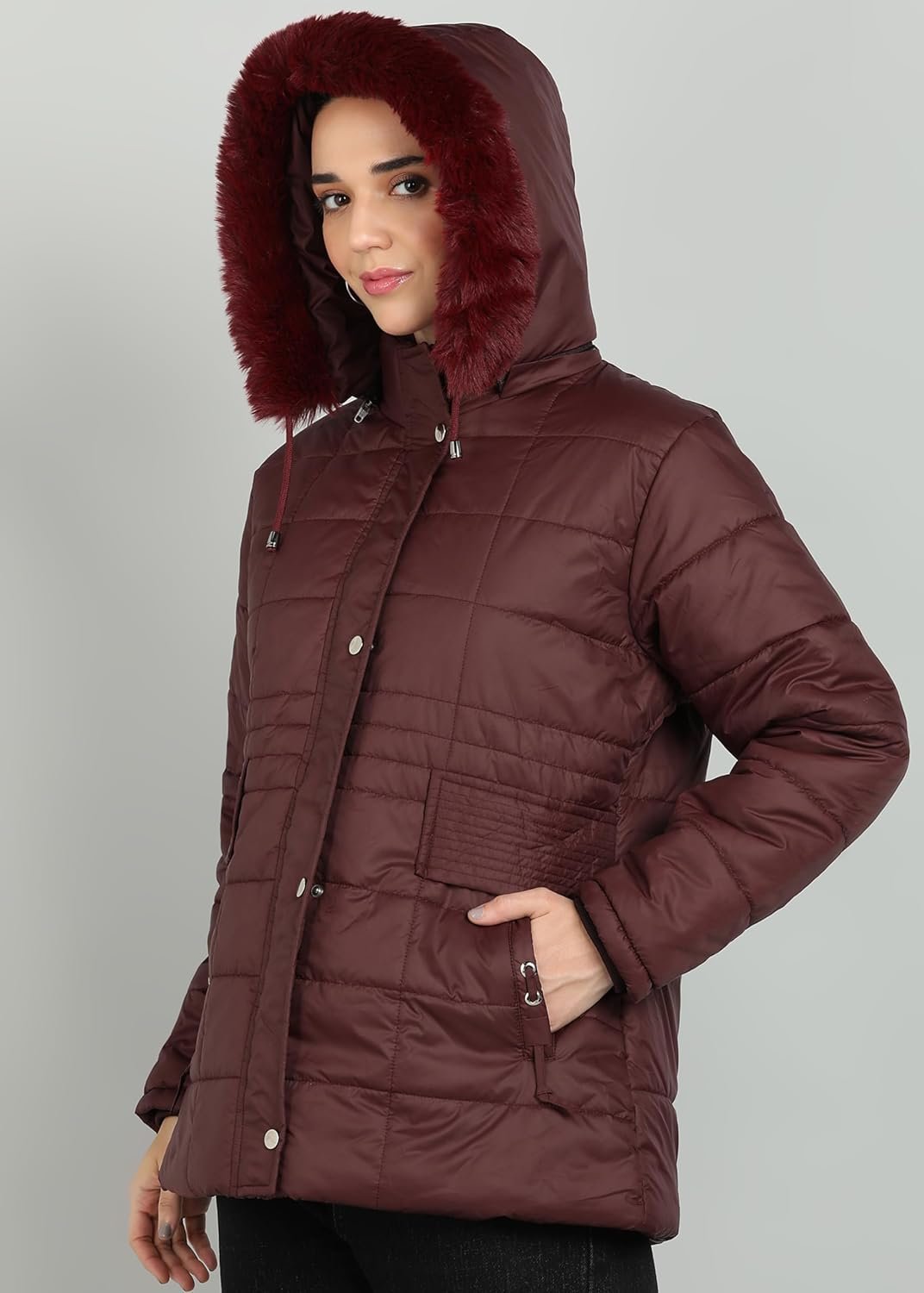 ELLIPSE Nylon Full Sleeve Winter Jacket With Detachable Hood For Girls & Women