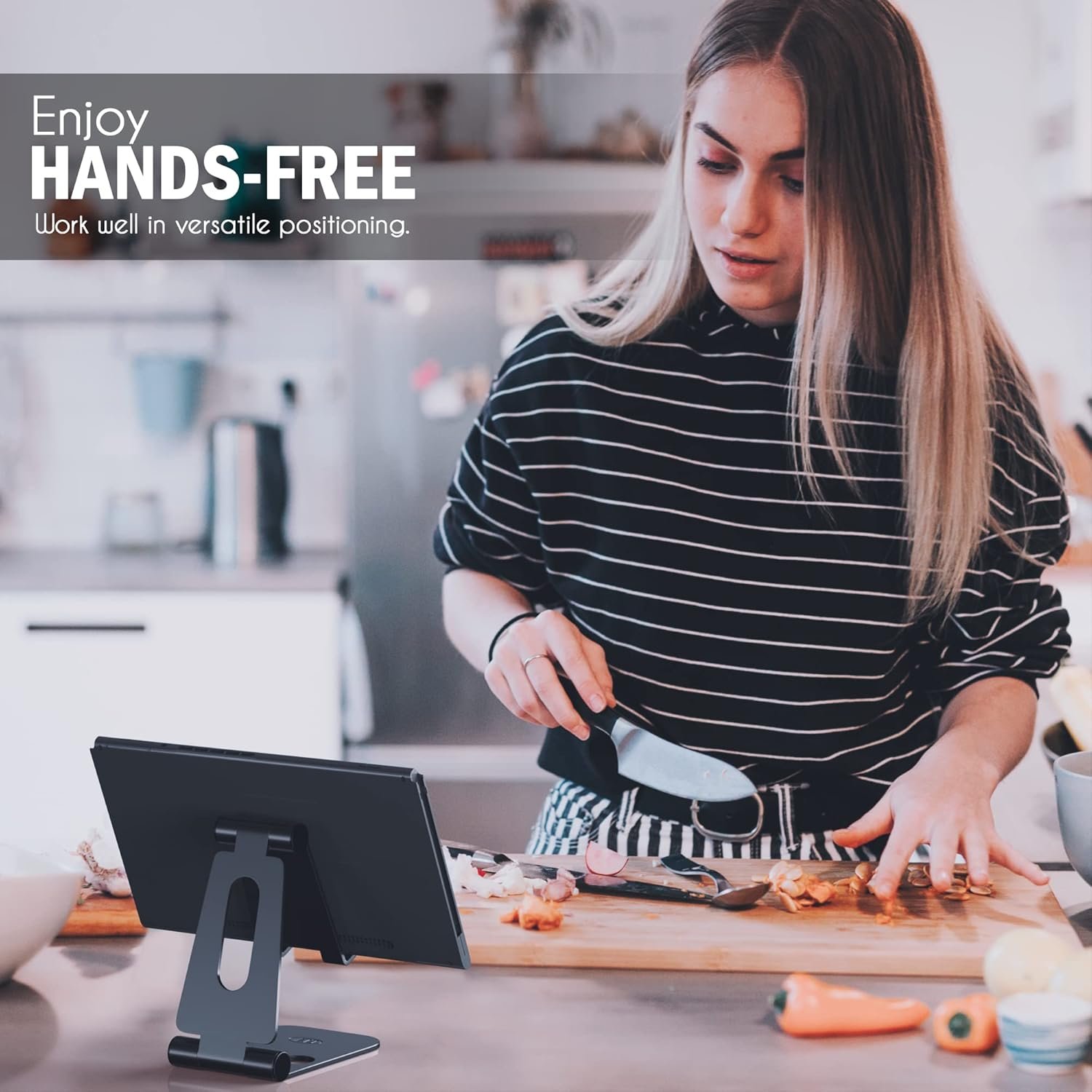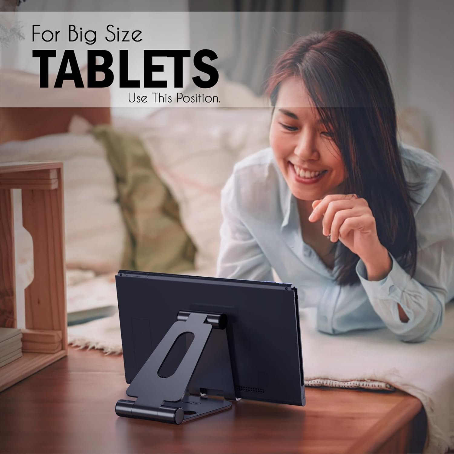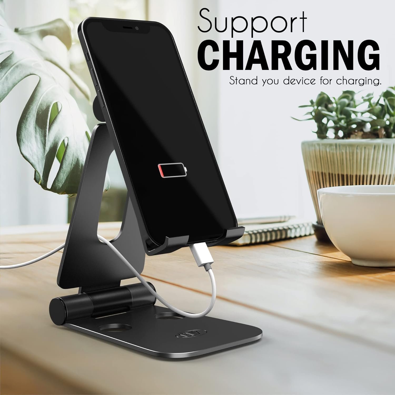 Adjustable design can holding your phone and charger while charging and the adjust function won’t bend your cord. Vertical placement.