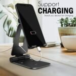 Aluminum Adjustable Mobile Phone Foldable Holder Stand Dock Mount for All Smartphones, Tabs, Kindle, iPad (Black)