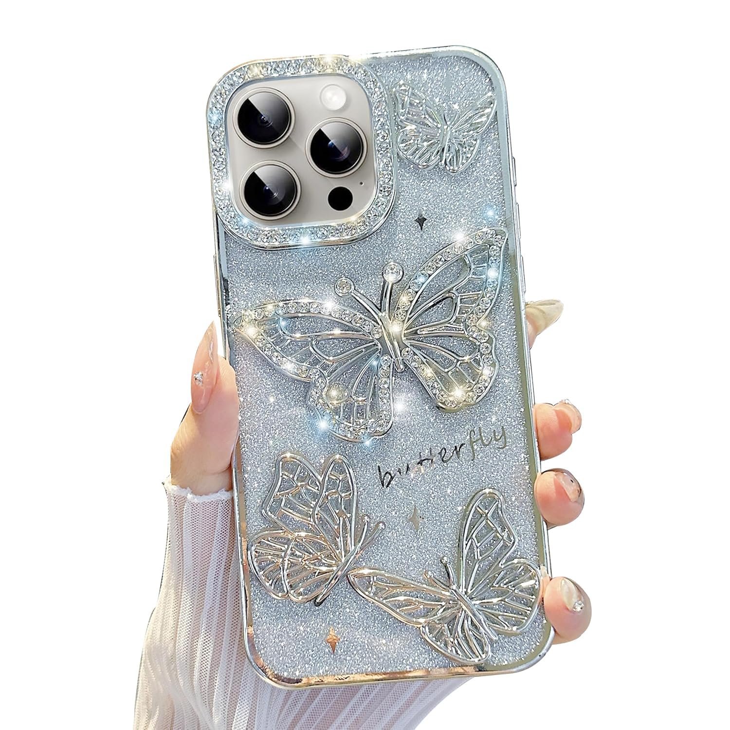 【Elegant Butterfly Design】Adorned with sparkling rhinestones and butterfly decorations, this phone case adds a touch of elegance and glamour to your device