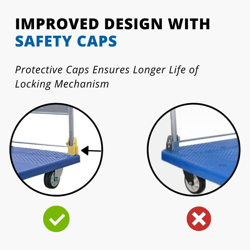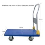 Material & Color: The platform is made of high density Polypropylene and bottom reinforcement panel for a tougher, pressure-resistant and long-lasting life. The folding handle is made of chrome steel with blue color.