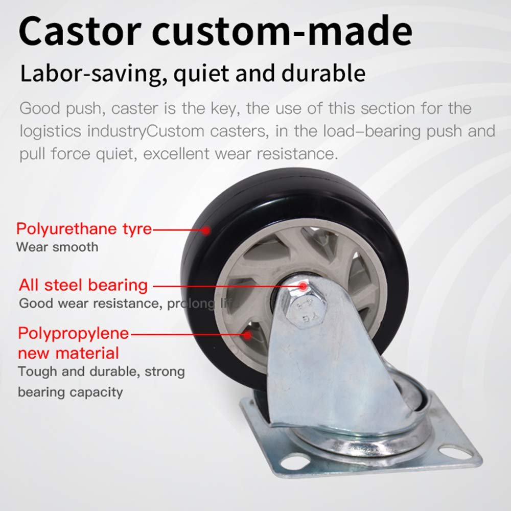 Durable Wheels: Our platform trolley has 3 swivel & 2 fixed (5 inch) rubber castor free moving wheels, and the trolley is suitable for use indoors and outdoors. the swivel wheels rotation 360°.
