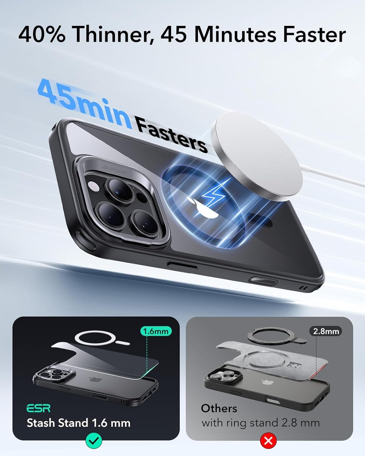 Stronger Magnetic Lock: powerful built-in magnets with 1,500 g of holding force enable faster, easier place-and-go wireless charging and a secure lock on any MagSafe accessory