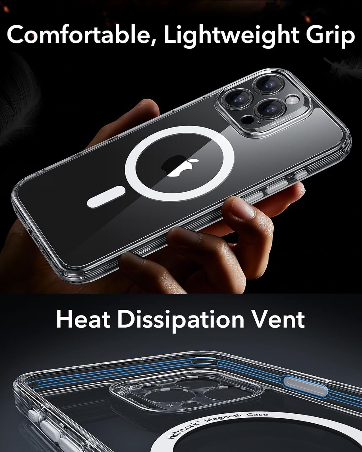 Total Phone Protection: grooved design of the air cushion frame promotes faster heat dissipation, reducing phone lag from overheating while keeping the device lightweight, and the raised edges with camera frame provide extra protection for the screen and camera