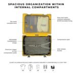 Organize efficiently with a fully zippered compartment for laptops on one side and a unique detachable compression pad and belt system on the other, keeping clothes secure during travel. Embrace the unique character of your luggage as it reflects the adventures you’ve taken.