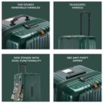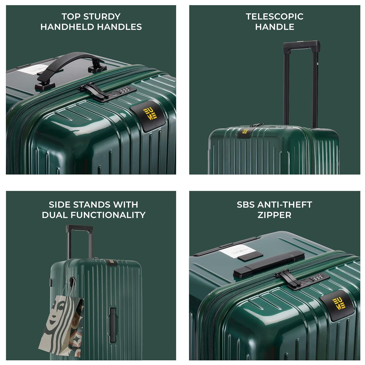 These polycarbonate trolley bags feature three sturdy handheld handles capable of lifting up to 22kgs, and premium-quality zippers for reliable closure, ensuring convenience and durability. Further, our luggage trolley can be extended by up to 3 inches, providing more room for extra items when needed.