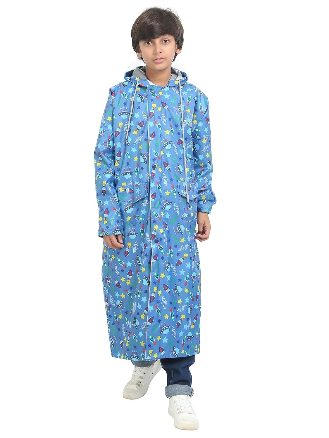 1) Size – Length – 30″ inches and Shoulder & Chest – 20″ inches. Ideal for Kids of age group – 5-6 years 2) Classic & Functional design in a relased fit, Double layered protection, Adjustable Hood and Pockets with flaps on them 3) Lightweight and packable design making it easy to pack and carry. Great to carry everywhere 4) Made of tough polyester fabric and fully seam-sealed at every joint making it completely waterproof. 5) Care Instructions: Dry completely before folding and storing for a long period in the storage bag