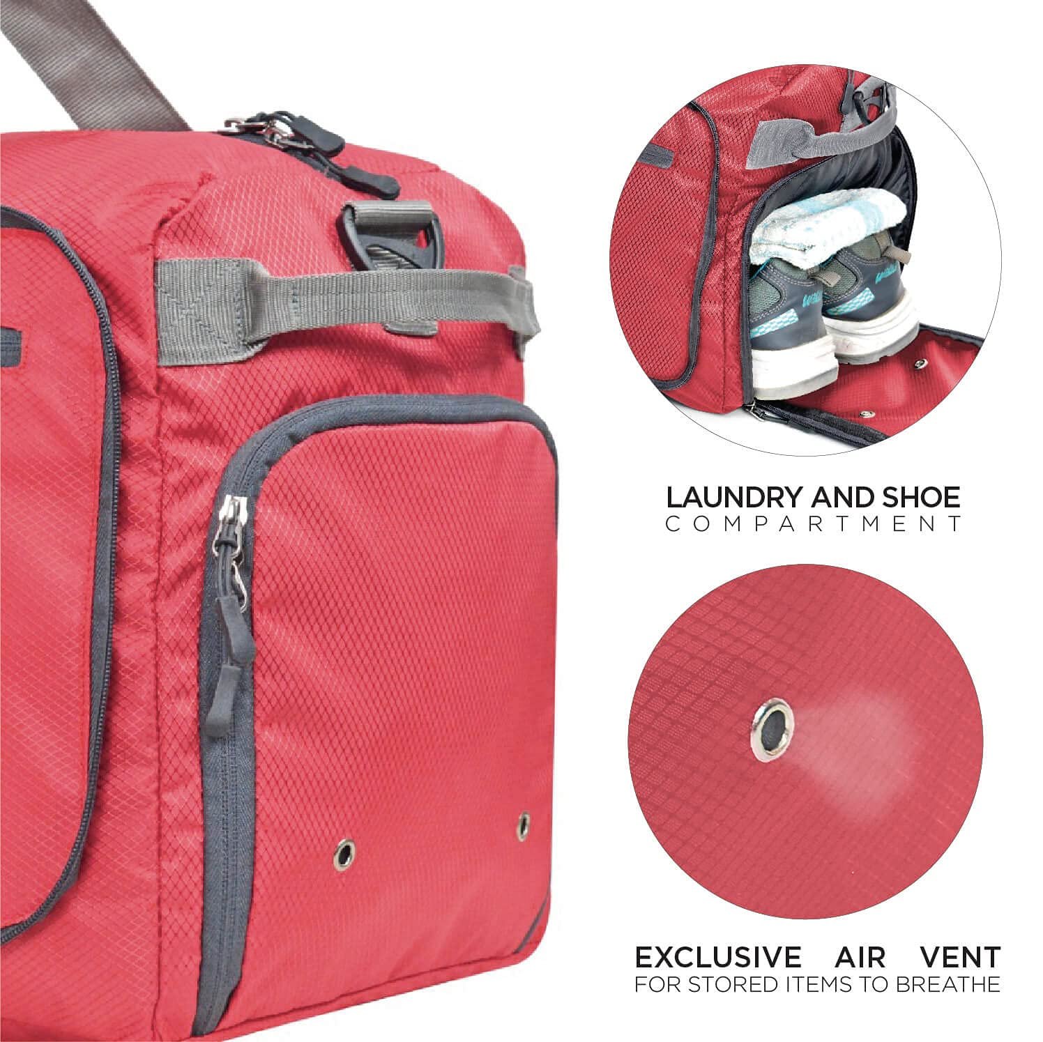 EVERYTHING ORGANIZED: A shoe compartment and 4 outer zippered pockets for easy access to essentials