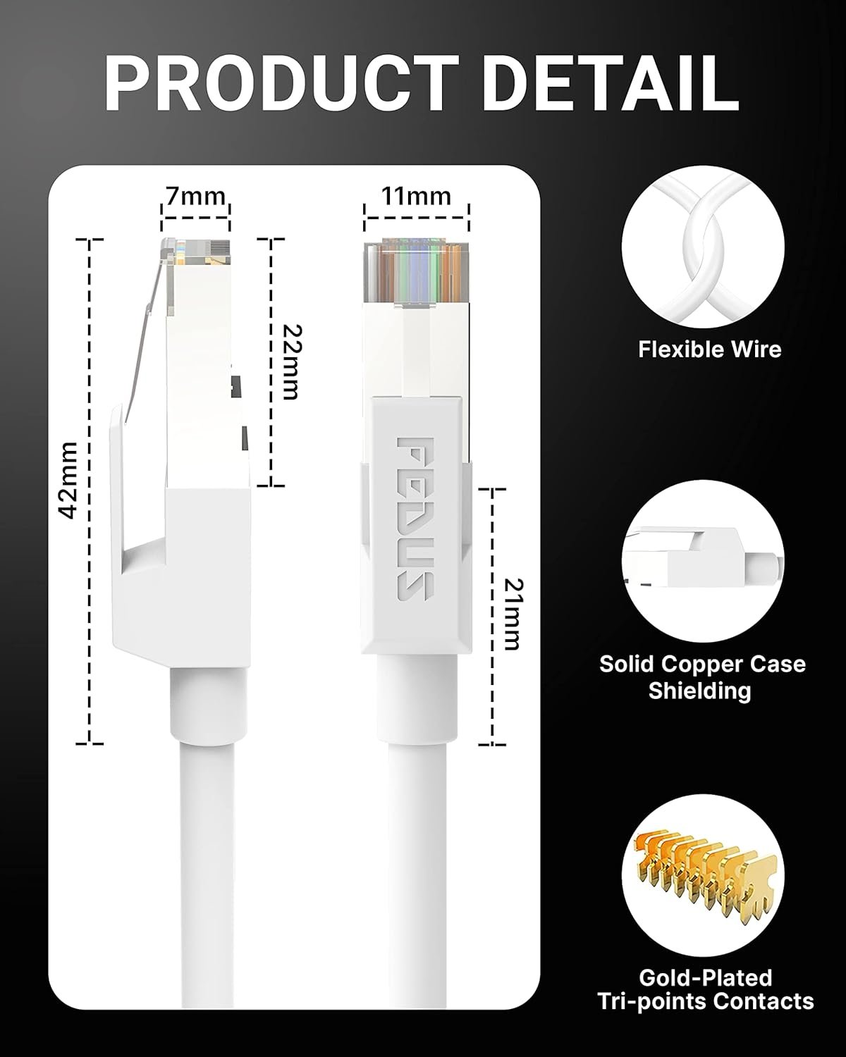 Experience an ultra-clean connection with our built-in PVC Cross Separator that seeks out speed-crippling crosstalk and stops it in its tracks. If you’re tired of seeing that constant “buffering” circle thanks to poor connectivity, fast Cat. is the answer!