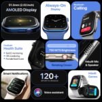 ULTRA-BRIGHT 2.02” AMOLED DISPLAY FOR CRISP VISIBILITY: Enjoy stunning visuals on a large 51.3mm (2.02”) always-on AMOLED display with 750 NITS brightness and 240×296 resolution. premium smart watch for men with crystal-clear readability even under bright sunlight.