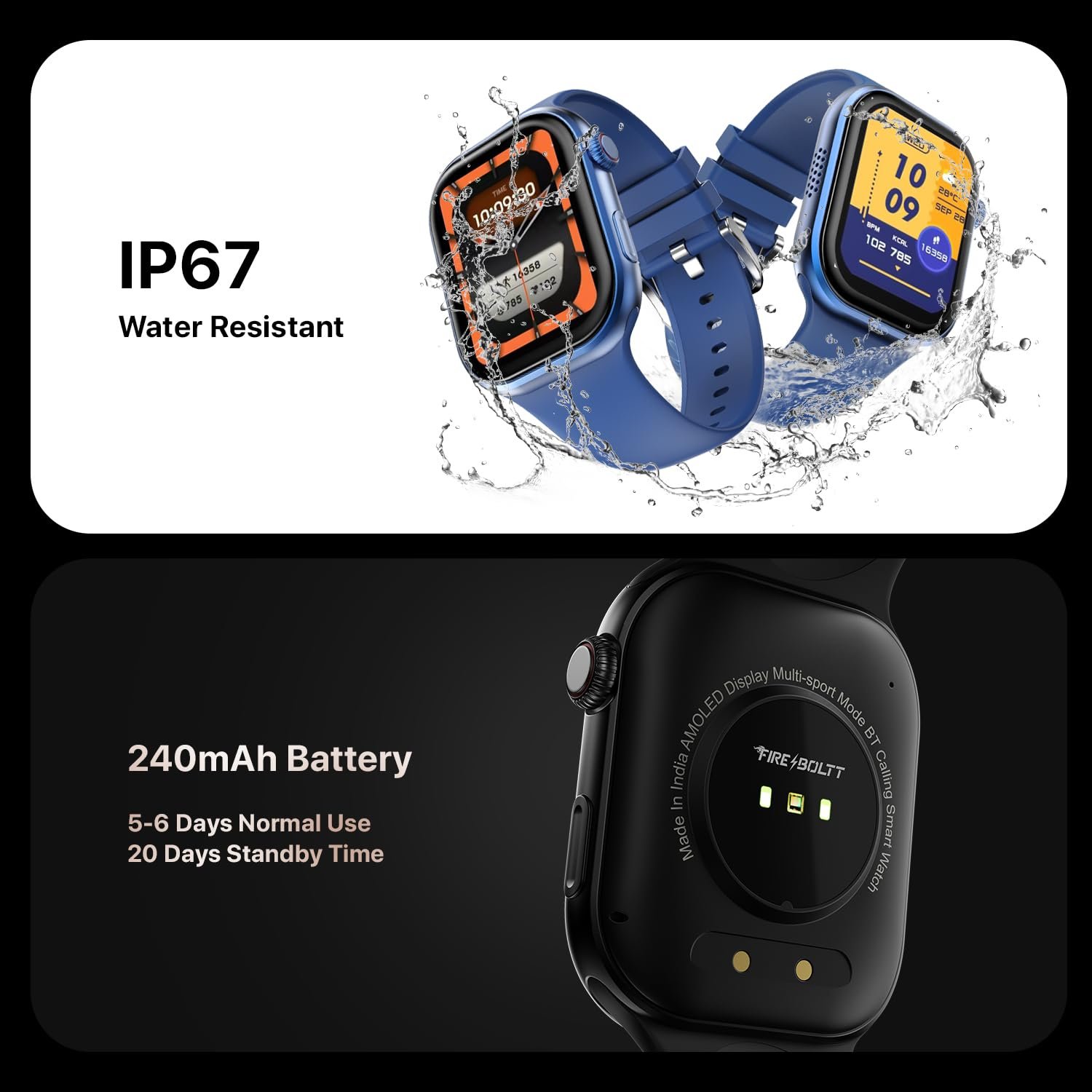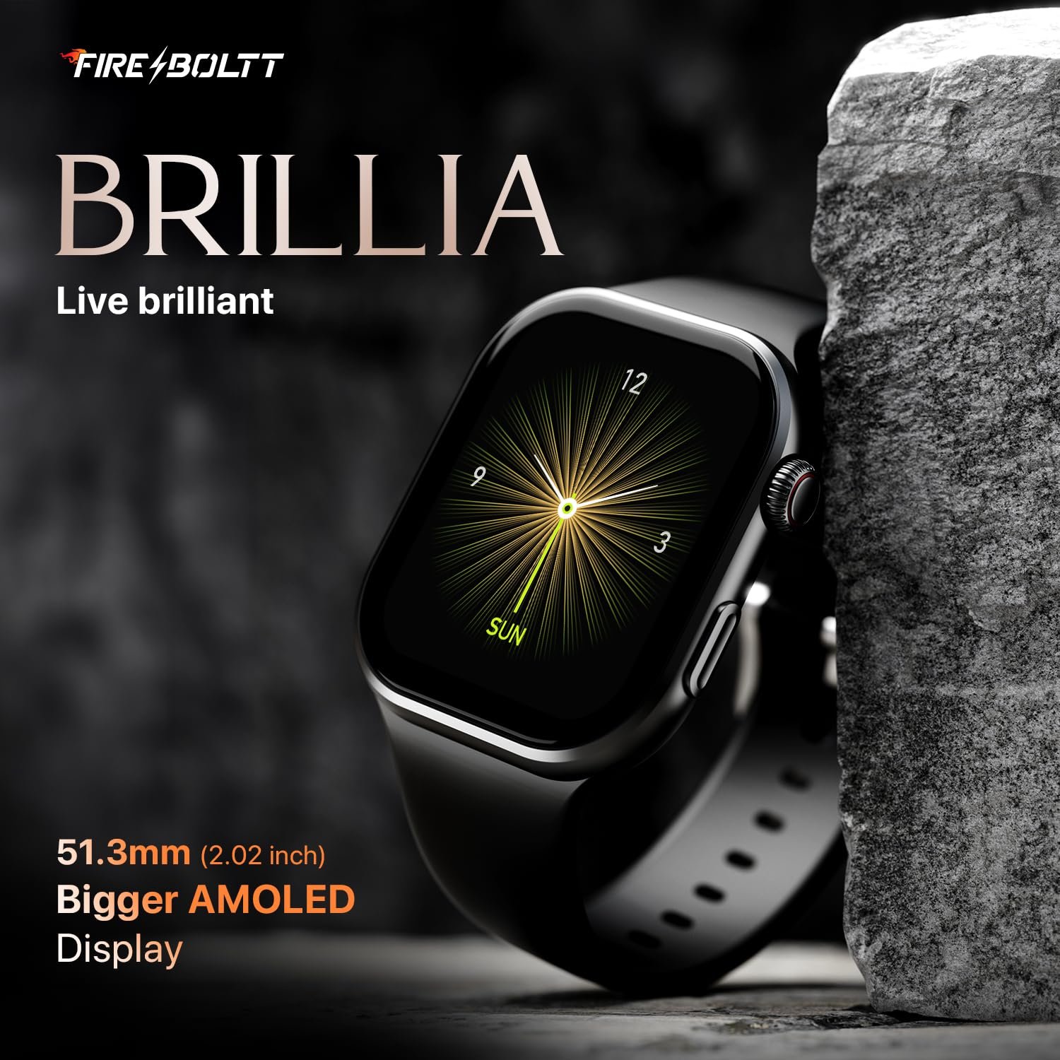 Fire-Boltt Brillia Smart Watch 2.02” AMOLED Display, Bluetooth Calling, SpO2, Heart Rate Monitor, 120+ Sports Modes, Fitness Tracker, Voice Assistant, Smart Watch for Man & Women– Black