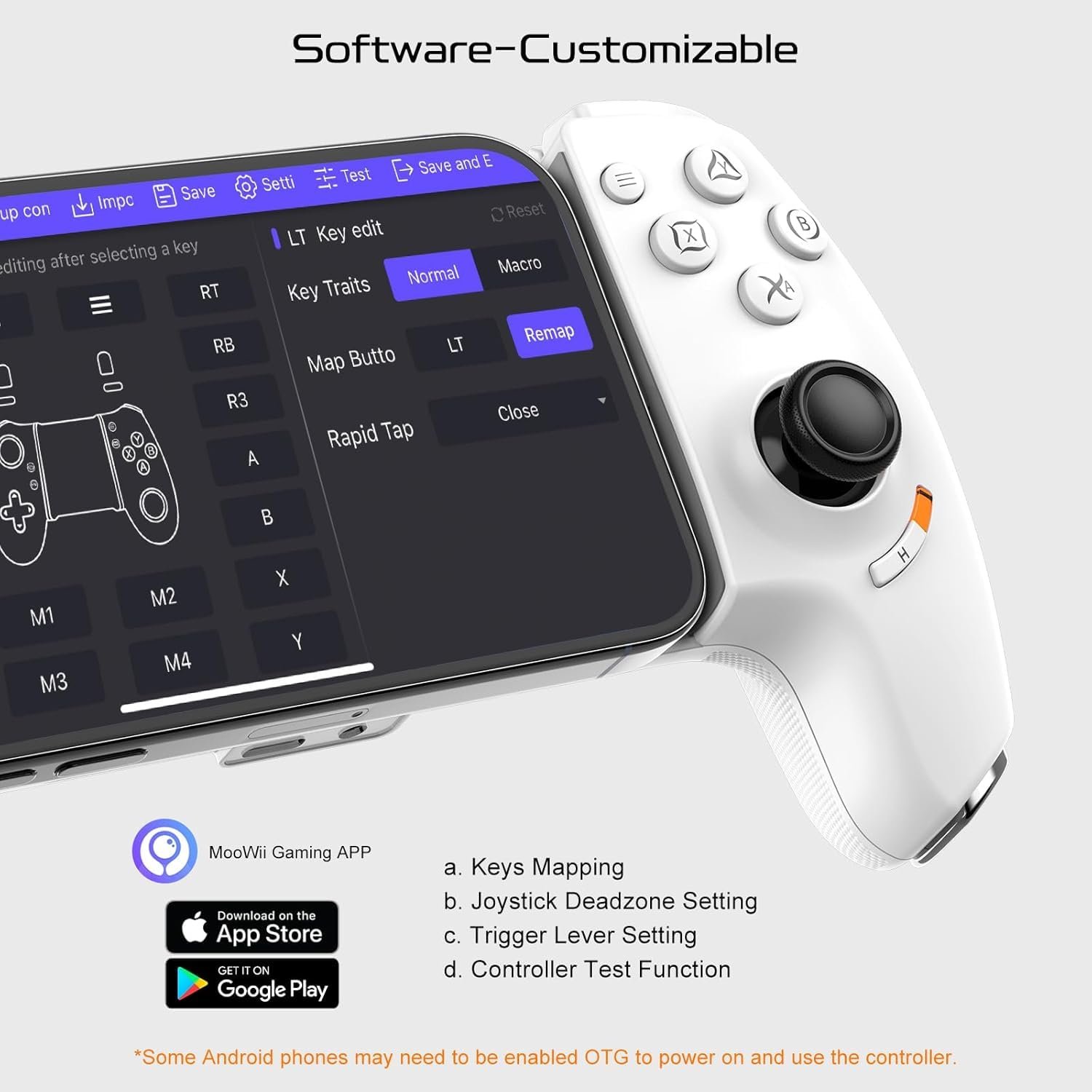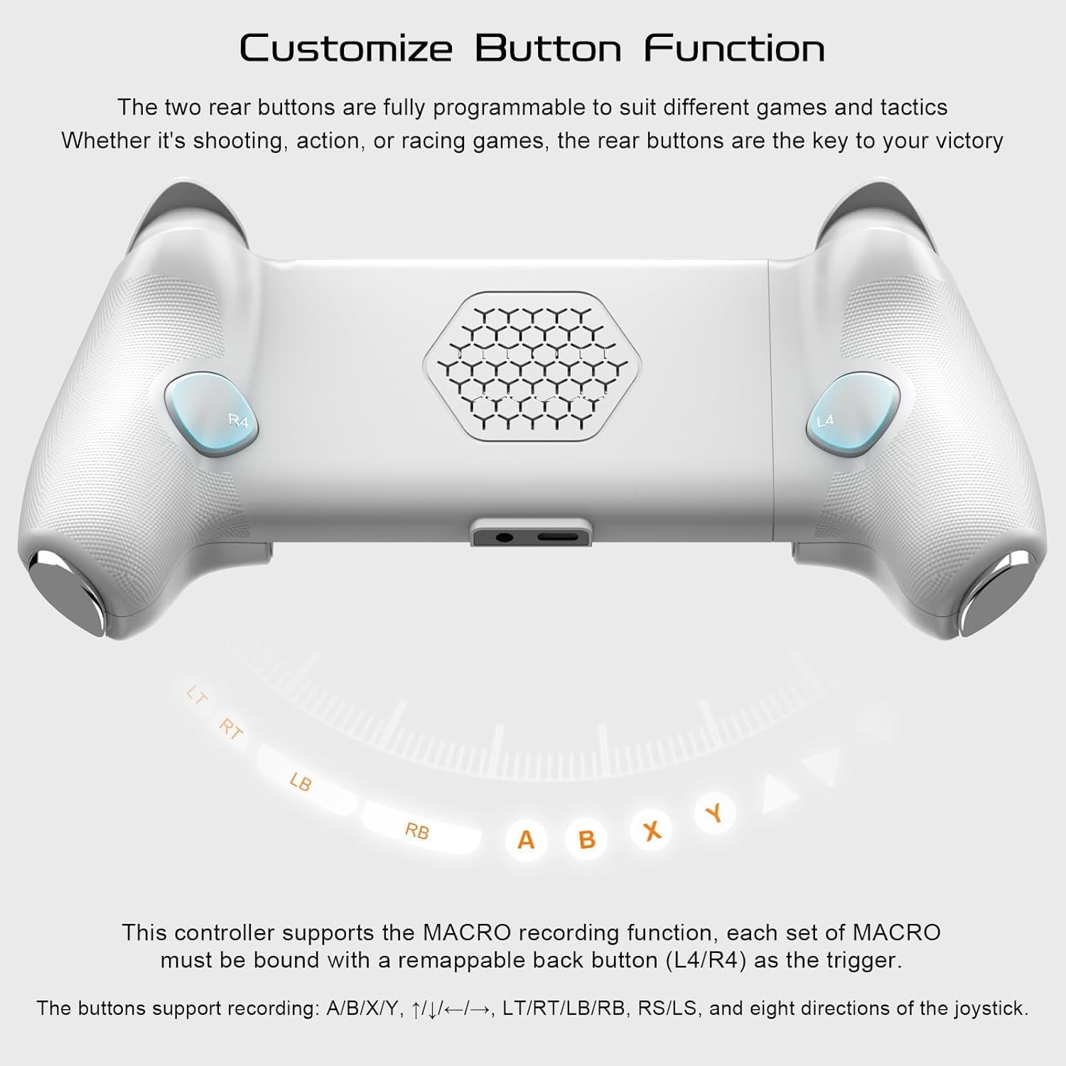 On-the-fly Mappings: Joso Simhon 01 has 2 extra back buttons (L4/R4) for quick in-game customization without software, you can map button L4=A+B+X+Y button combinations or a combination of more functions; Mappable buttons: A/B/X/Y/RB/RT/LB/LT/LS/RS/D-Pad; And the controller supports Manual & Auto Turbo