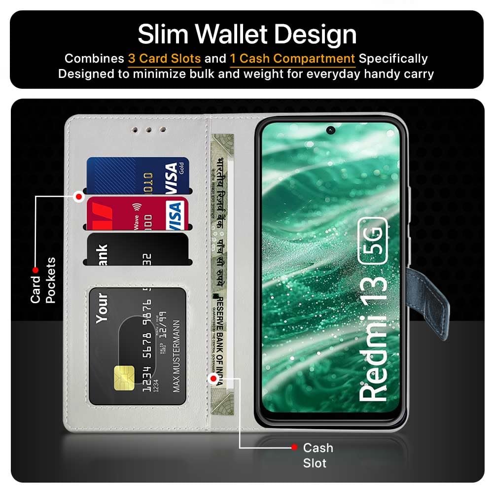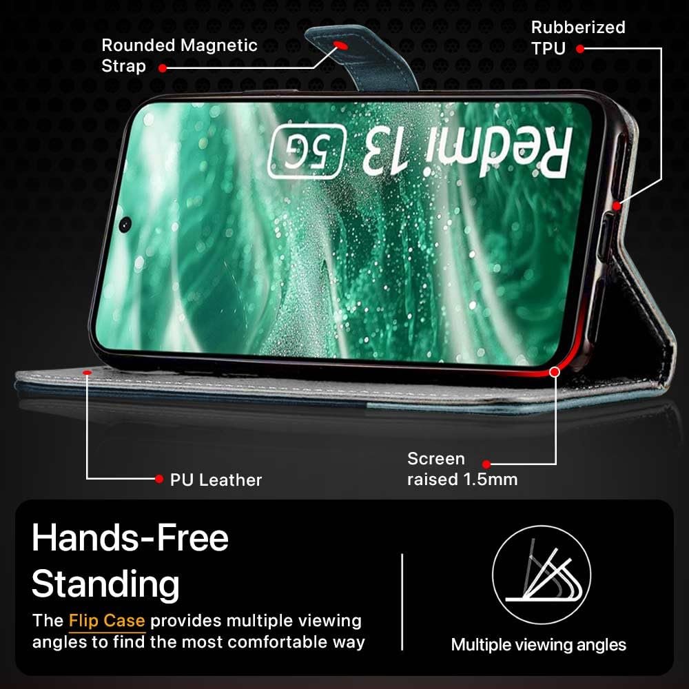 Precisely Crafted For Redmi 13 5G | Poco M6 Plus 5G – Premium Vegan Leather Flip Back Case Cover