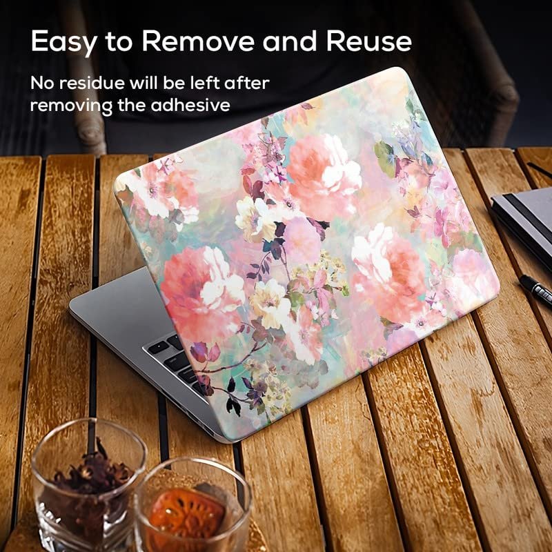 Floral D7 Top+Wrist Pad Vinyl Laptop Skin/Sticker/Cover for 15 to 15.6 Inches Laptops Laminated-Removable-HD Quality Compatible for Hp-Dell-Sony-Lenovo-Asus etc.(15×10 Inches)