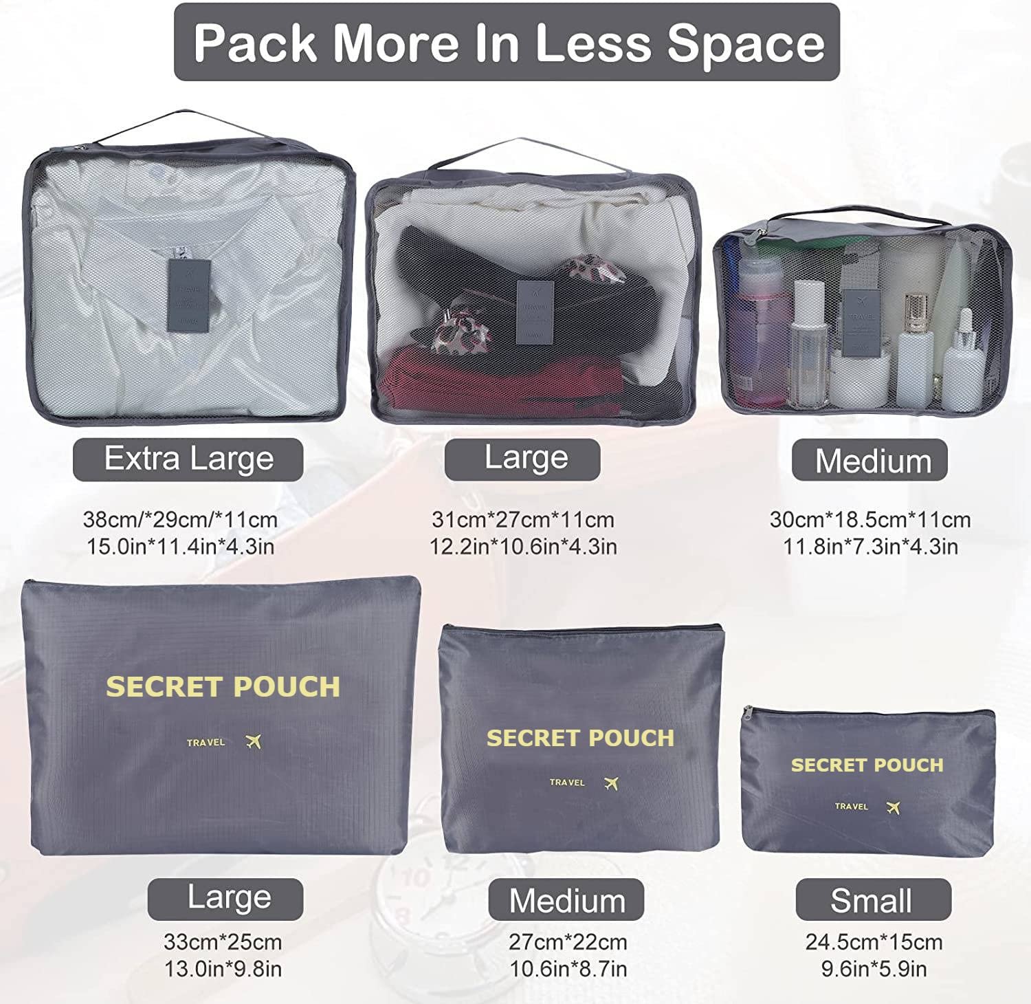 Luggage cubes come with breathable mesh design, inside visible and make seeking stuff a doddle, sturdy handle, convenient for carrying.