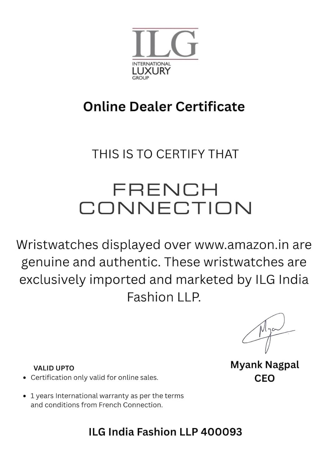 Importer ‏ : ‎ ILG INDIA FASHION LLP, Pinnacle Business Park, S9-7th Floor, next to Ahura Center, Mahakali caves Road, Andheri east, mumbai – 400097