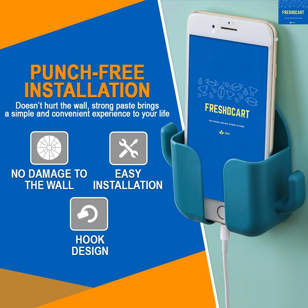 FreshDcart Mobile Holder for Home – Self-Adhesive Phone Charging Holder with Dual Hooks, Ideal for Bathroom, Kitchen, Bedroom, Office – Reusable ABS Build, Pack of 4 (Random Color)