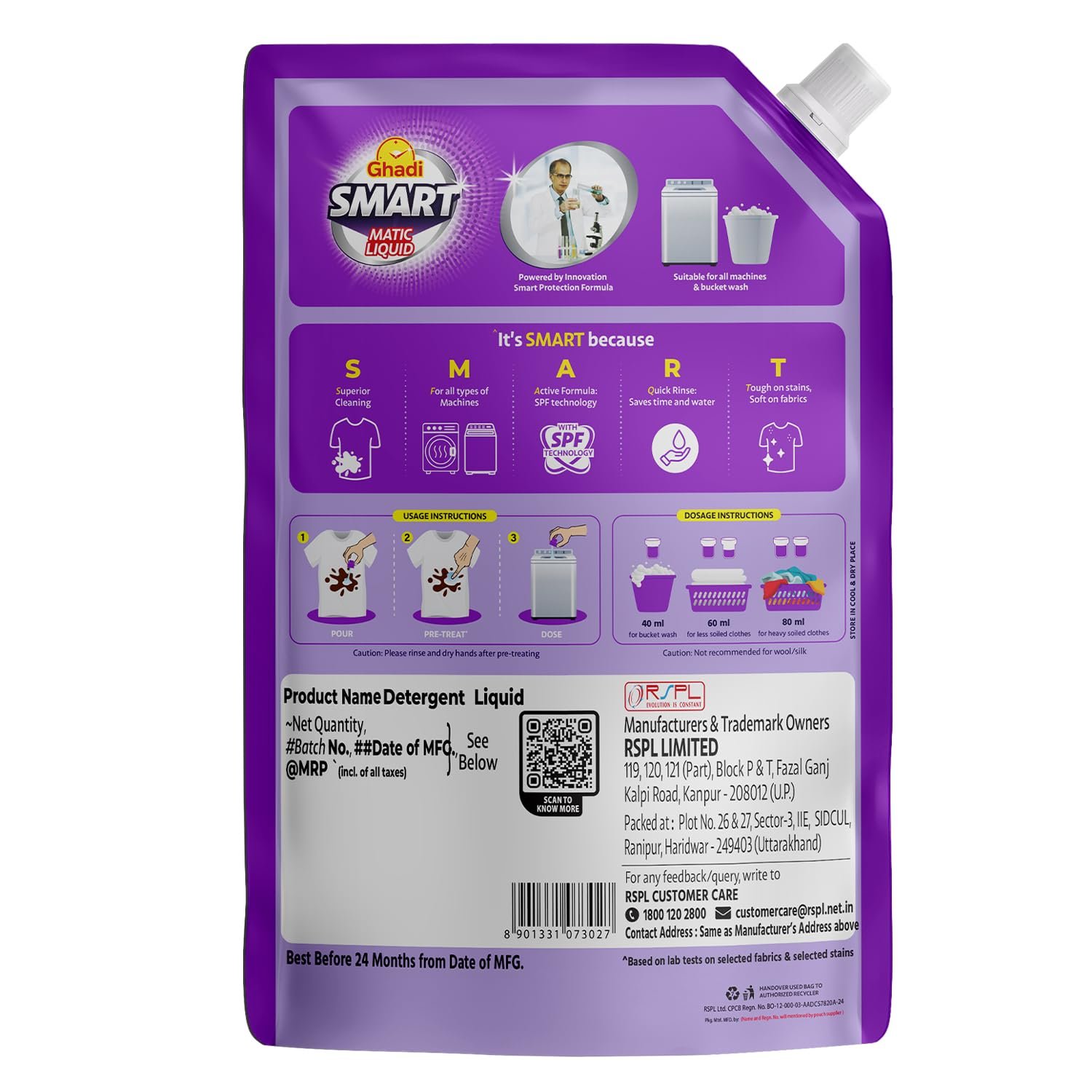 SPF TECHNOLOGY : Features Smart Protection Formula for powerful stain removal and colour protection while being gentle on fabrics.