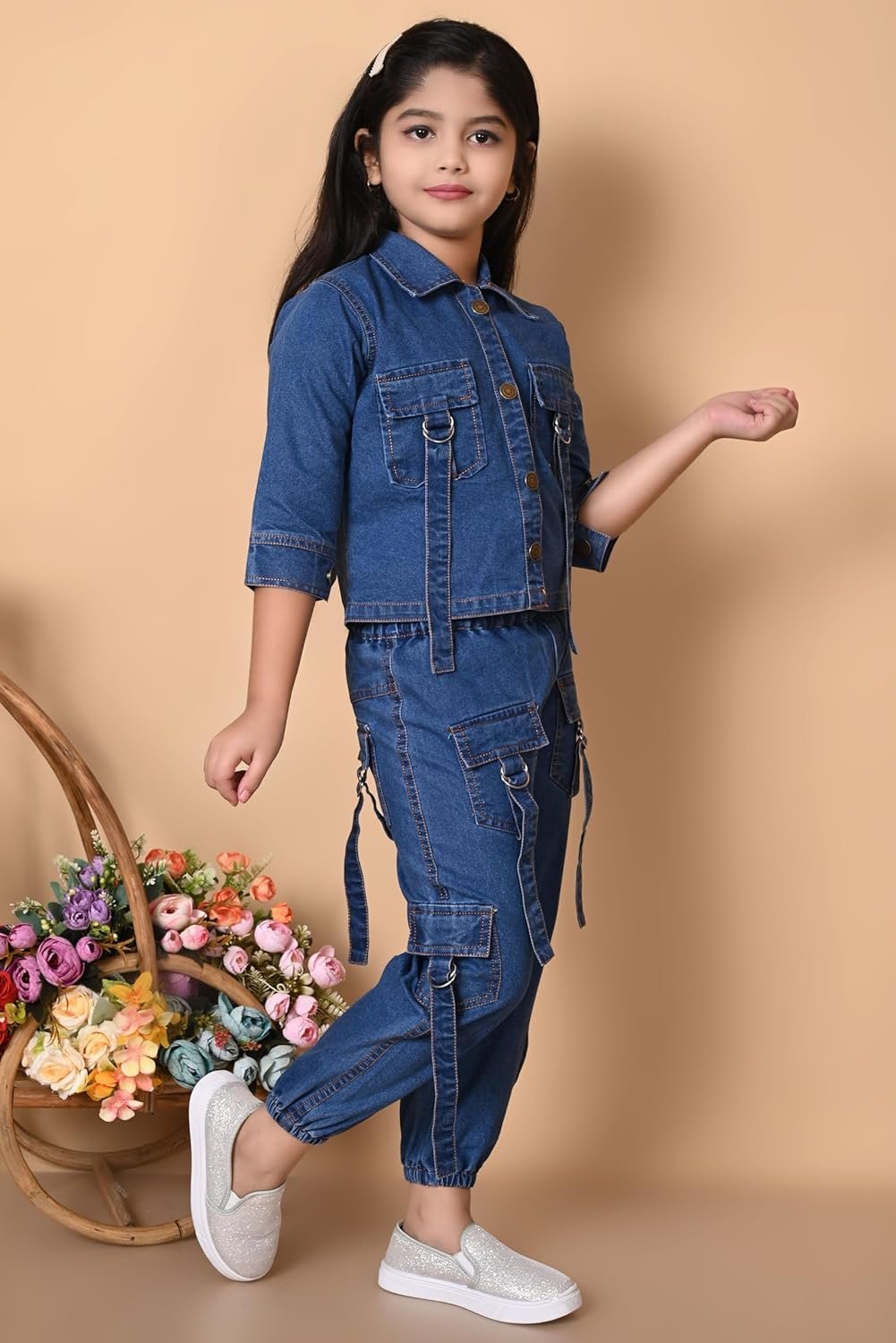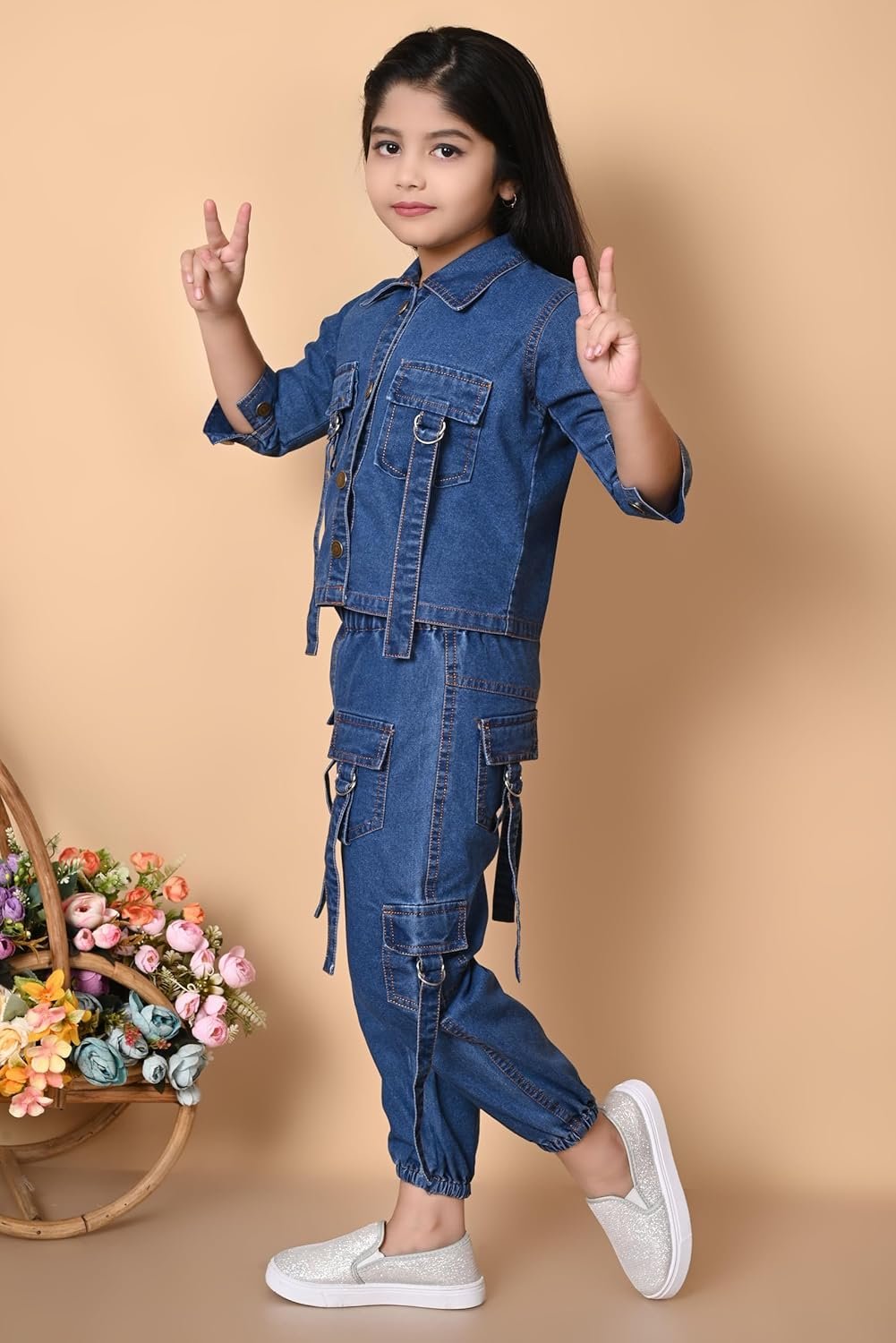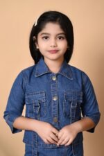 Embrace the timeless charm of denim with this stylish girls’ jeans set. Crafted from high-quality denim fabric, this ensemble exudes a cool and casual vibe perfect for everyday wear. The jacket features a classic collar, button-front closure, and multiple pockets, offering both style and functionality. The matching jeans boast a relaxed fit with cargo pockets, allowing for unrestricted movement and comfort. This versatile set can be effortlessly dressed up or down, making it a go-to choice for school, playdates, or casual outings. With its durable construction and trendy design, this girls’ jeans set is sure to become a wardrobe staple. Available in a range of sizes to suit growing girls, it promises a perfect fit and long-lasting wear. Elevate your little one’s fashion game with this chic and practical denim set.