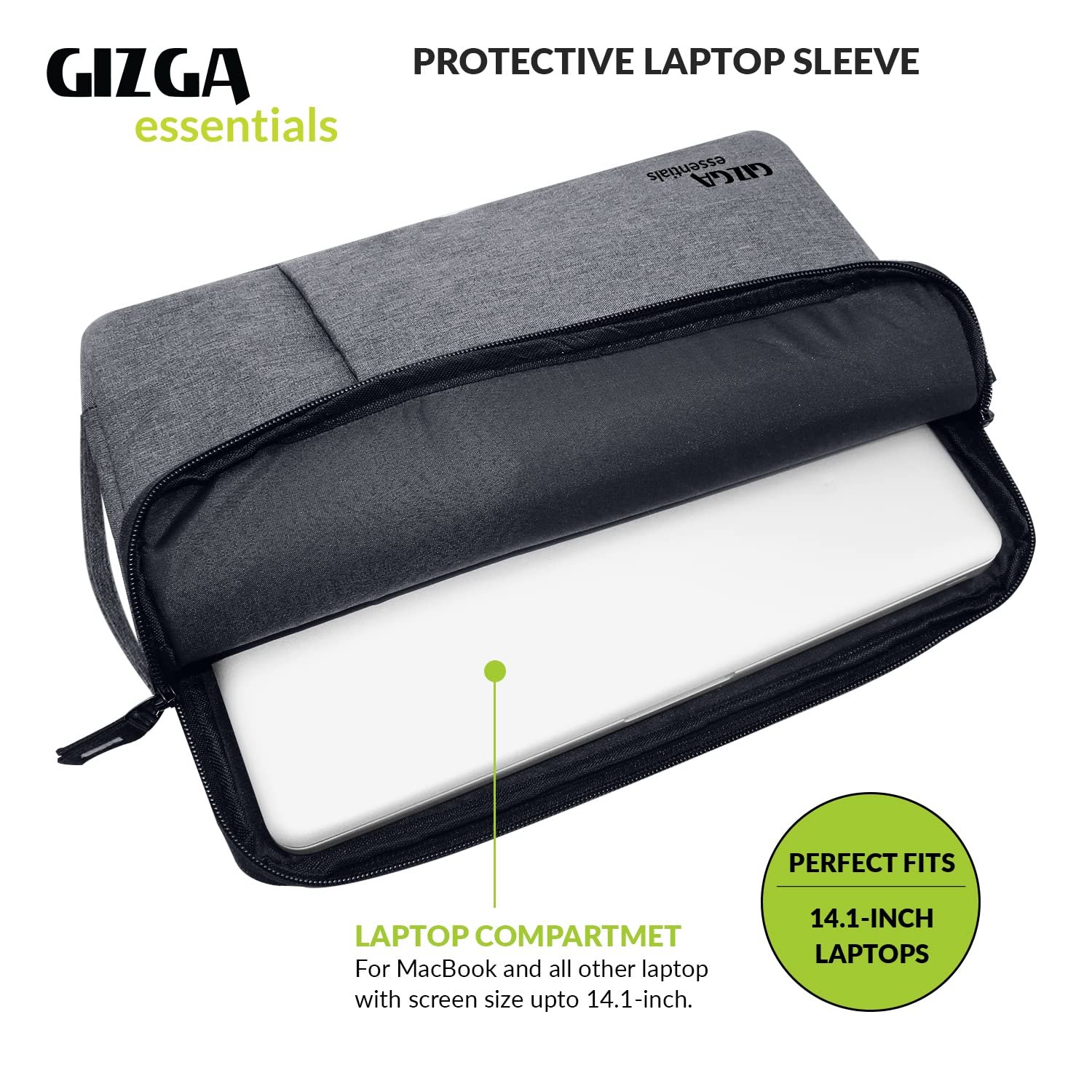 Gizga Essentials 14.1 Inch Laptop Sleeve Case Cover Pouch Bag With Handle & Front Pocket | Slim & Water-resistant Nylon Fabric With Shockproof Foam Padding, Soft Lining & Premium Zipper Closure (Grey)