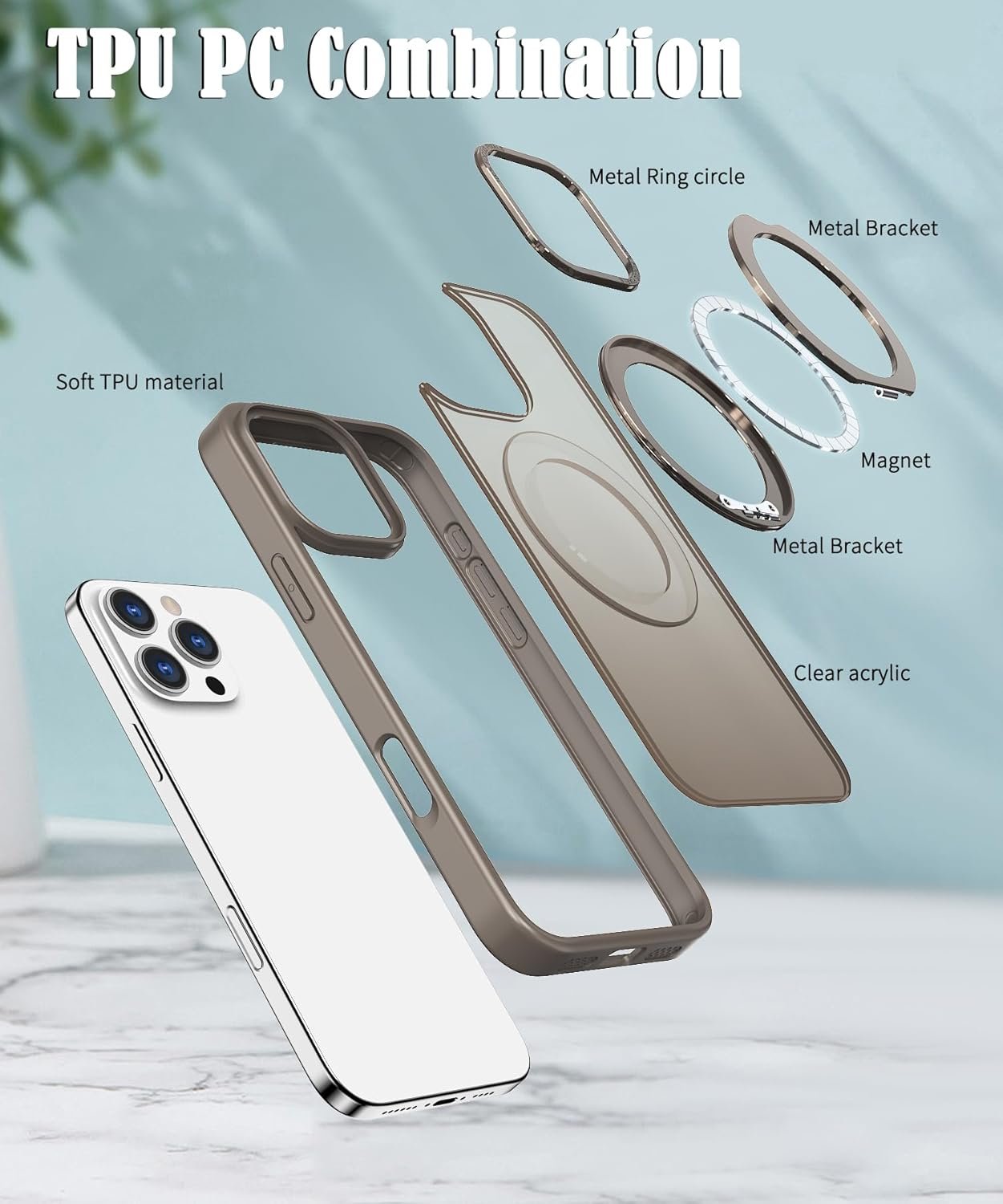 GLASSOLOGY: Elevate Your iPhone 16 Pro Max Protection & Style Enhance your mobile device’s protection and style with the Glassology Metal360 Ring Case for the iPhone 16 Pro Max. This is not just a case—it’s a precision-engineered safeguard designed to complement the sophisticated aesthetics of your new phone while providing superior, heavy-duty defense against everyday life. Engineered for the iPhone 16 Pro Max User: FULL 360° METAL RING KICKSTAND: Features our exclusive Metal360 Ring that rotates a full 360 degrees. Use it as a secure grip for one-handed use or as a durable hands-free kickstand for landscape viewing (perfect for video calls and streaming). MAGSAFE COMPATIBILITY: Built with a powerful N52 magnet array, this case provides a seamless and secure lock onto all MagSafe accessories (chargers, wallets, car mounts). Experience reliable, full-speed wireless charging every time. PREMIUM HYBRID PROTECTION: Crafted from a dual-layer Matte Translucent TPU + PC (Polycarbonate) hybrid material. The flexible TPU bumper absorbs impact, while the rigid PC back provides exceptional shockproof and anti-scratch protection, ensuring long-term clarity and durability. FROSTED ANTI-FINGERPRINT FINISH: The stylish frosted matte finish not only gives your iPhone 16 Pro Max a high-end, translucent look but also actively resists fingerprints and smudges, keeping your case looking clean and new. Exceptional Durability and Precision: We craft our cases with precision to ensure exceptional durability, clarity, and functionality. Glassology cases offer superior, reliable protection without compromising the slim aesthetics of your device. Tactile Button Covers: Responsive button covers provide easy access and a crisp click feedback, protecting your phone’s controls from dust and grime. Raised Camera & Screen Bezel: Strategically raised edges around the screen and the sensitive camera module offer essential protection when placed on flat surfaces. Lightweight, Anti-Yellowing Design: Despite its rugged features, this cover maintains a light, easy-to-carry profile and is treated with an anti-yellowing coating to maintain its pristine look over time. Glassology: Engineered to Fit Your Life. Safeguard your investment with the ultimate magnetic ring case built for the iPhone 16 Pro Max.