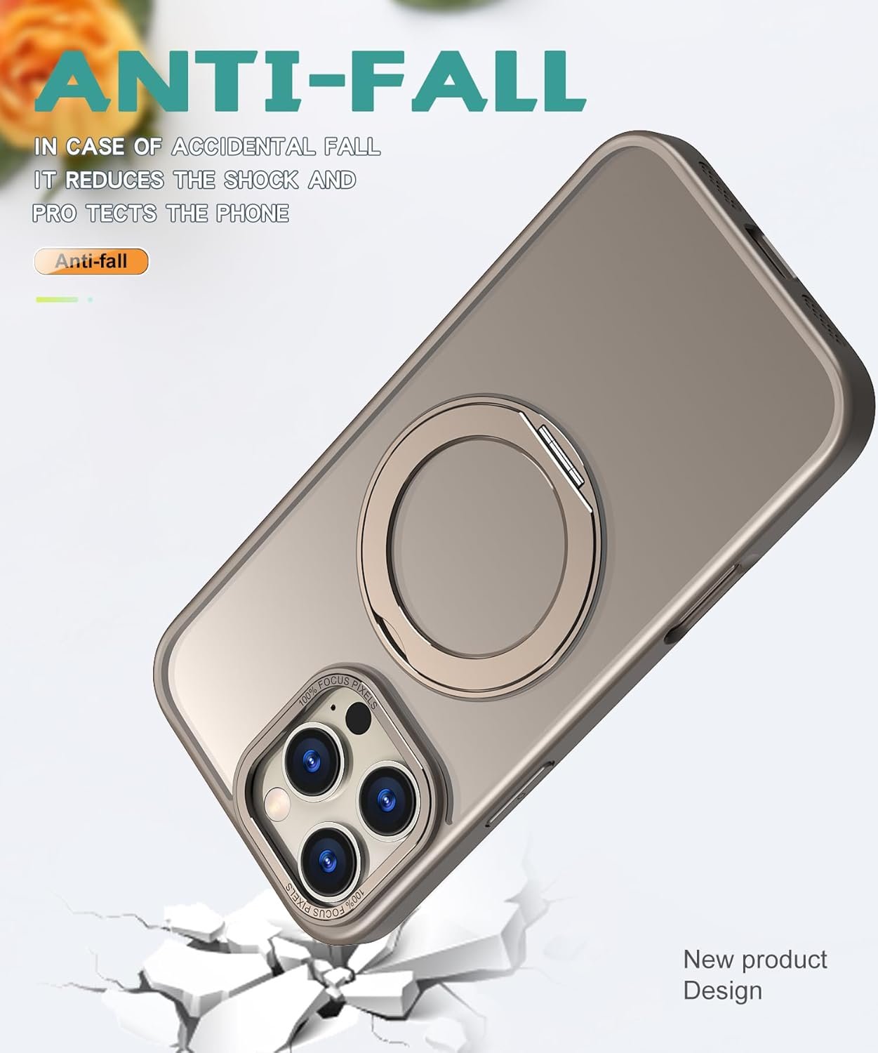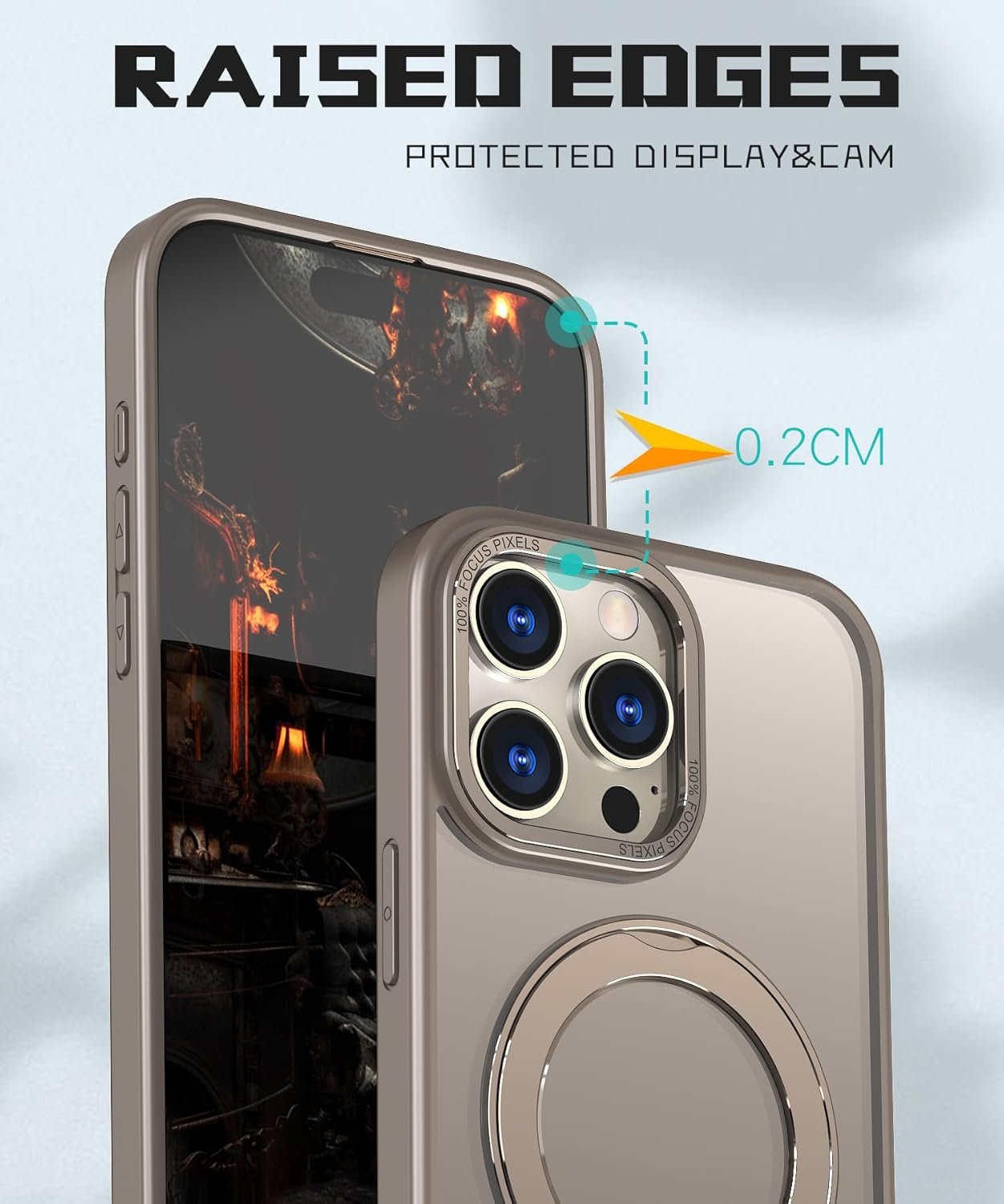 Glassology Metal 360 Ring Case for iPhone 16 Pro Max Frosted Magnetic Case – Matte Translucent TPU+PC Shockproof & Anti-Scratch Phone Cover with N52 Magnet (Desert Titanium)