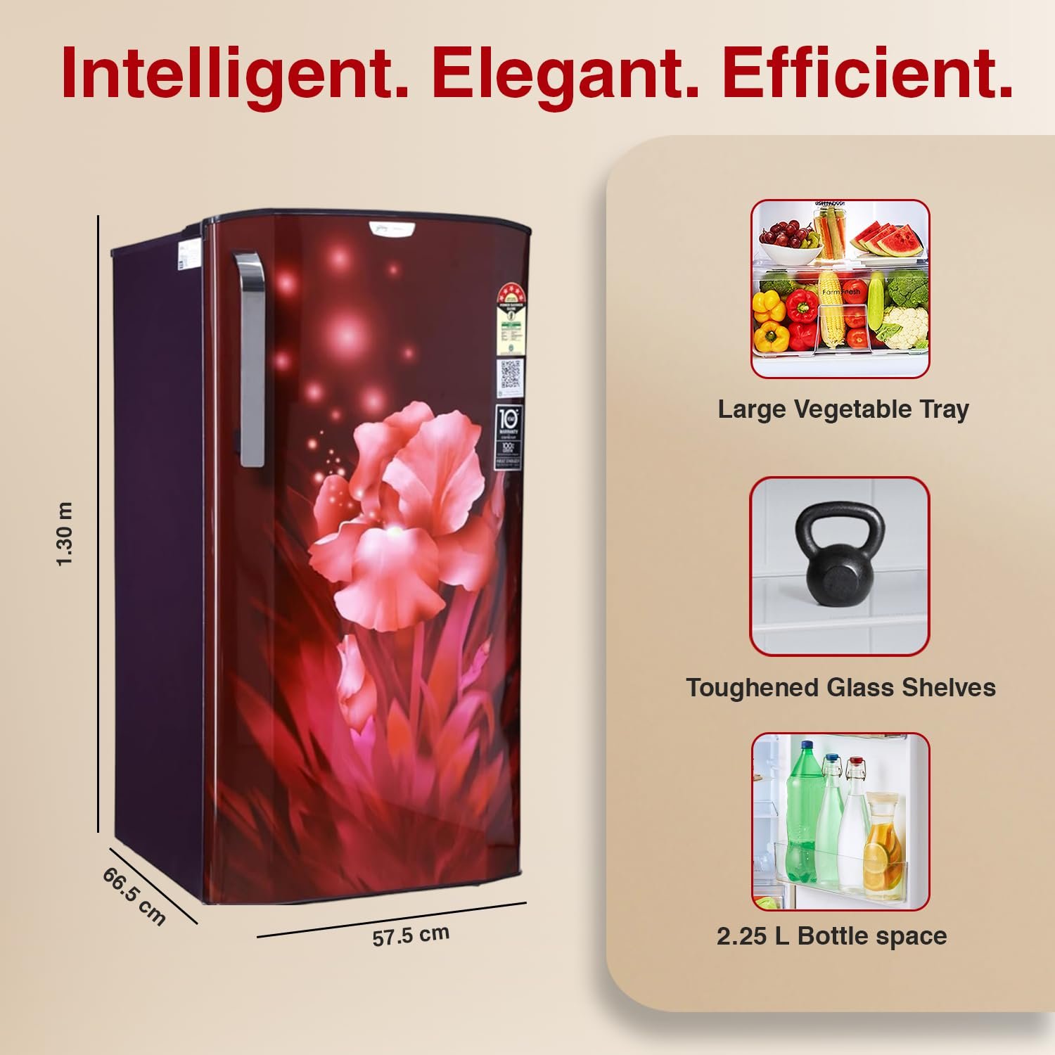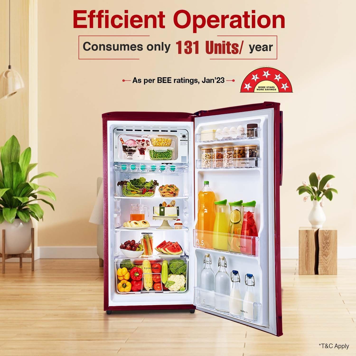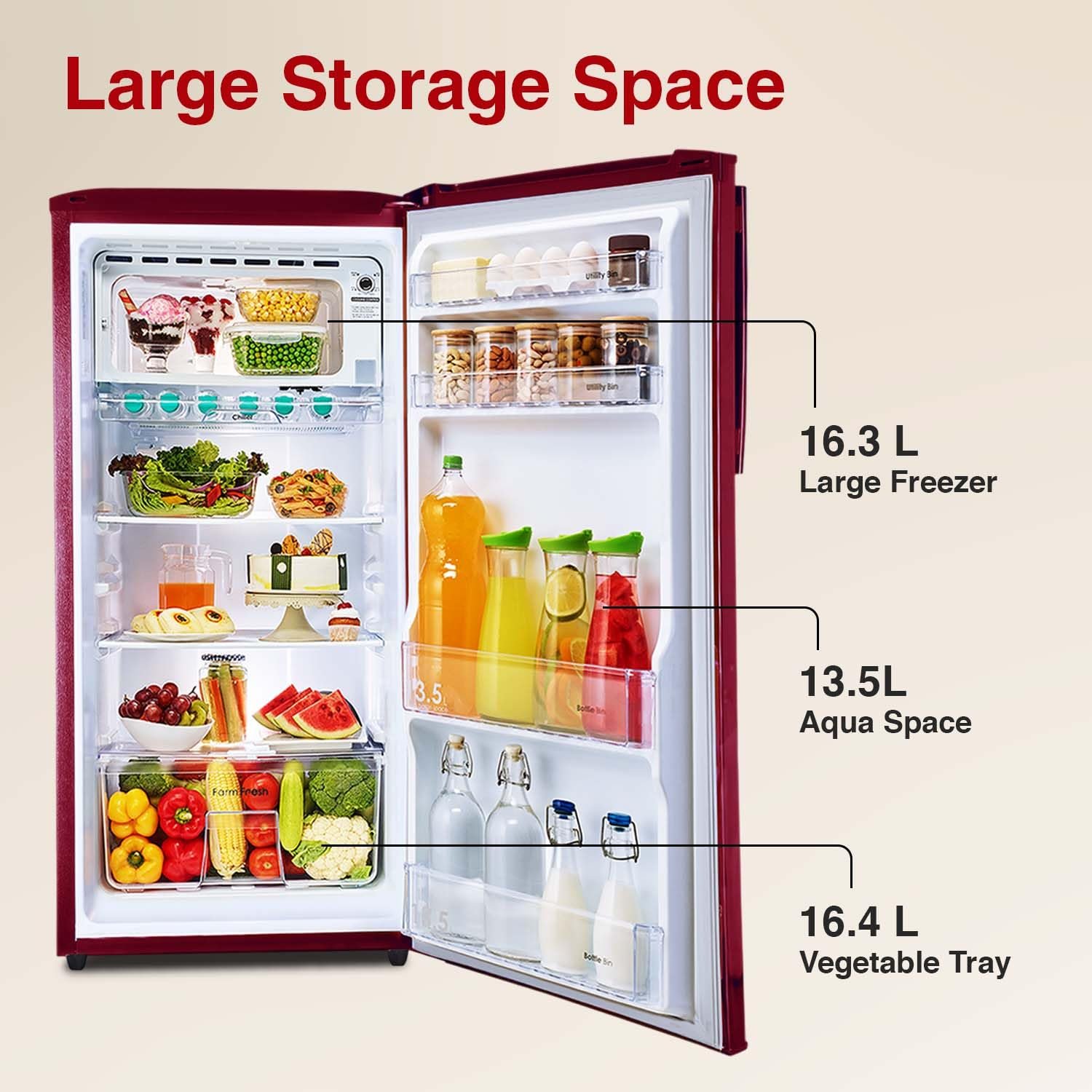 Godrej 180 L 5 Star Turbo Cooling Technology, 24 Days Farm Freshness Direct Cool Single Door Refrigerator Appliance (2023 Model, RD EDGENEO 207E THF AQ WN, Aqua Wine)
