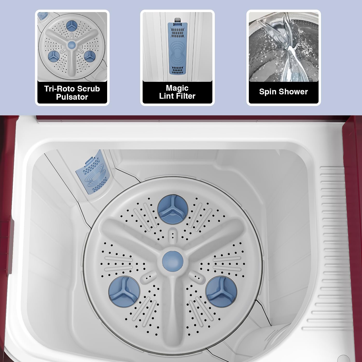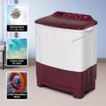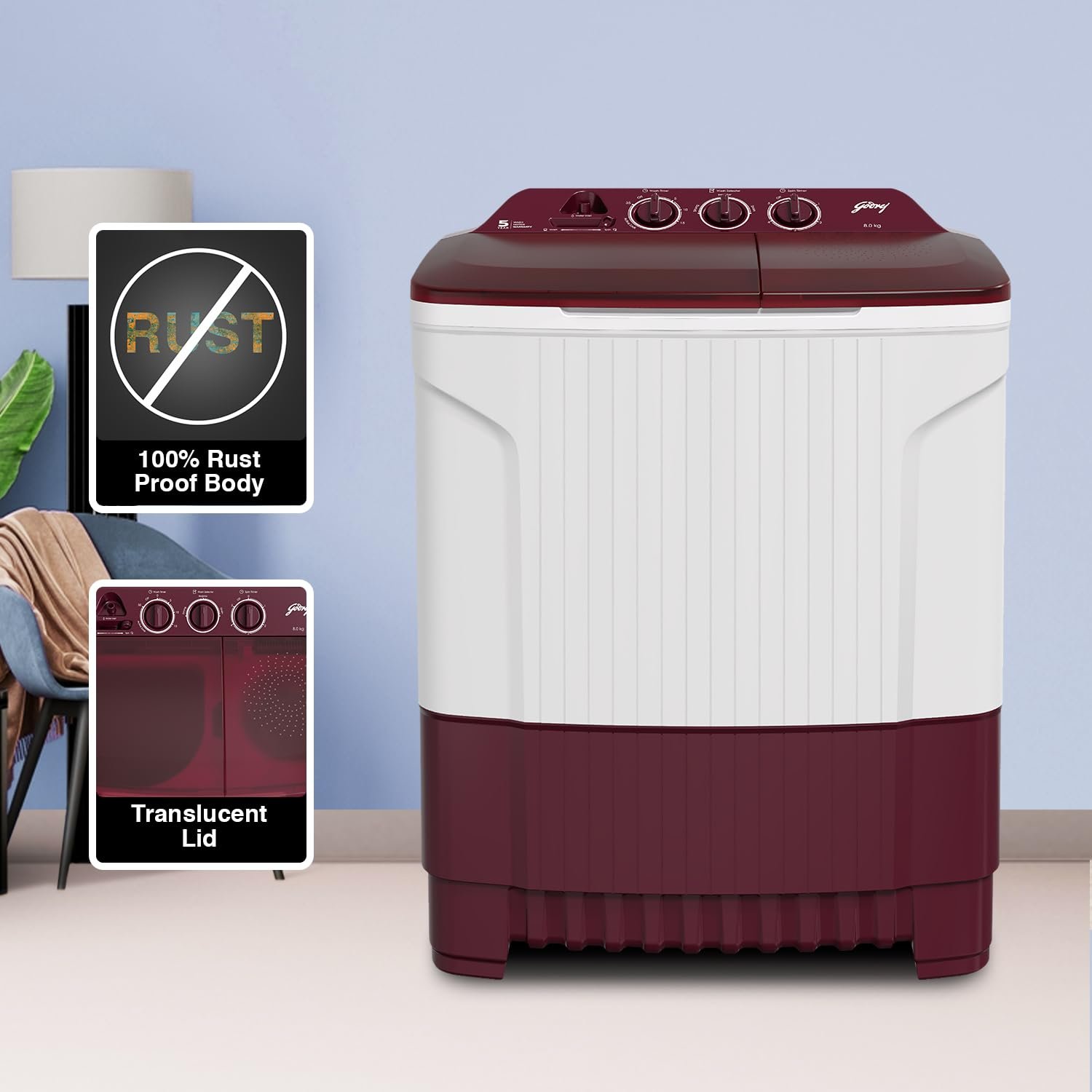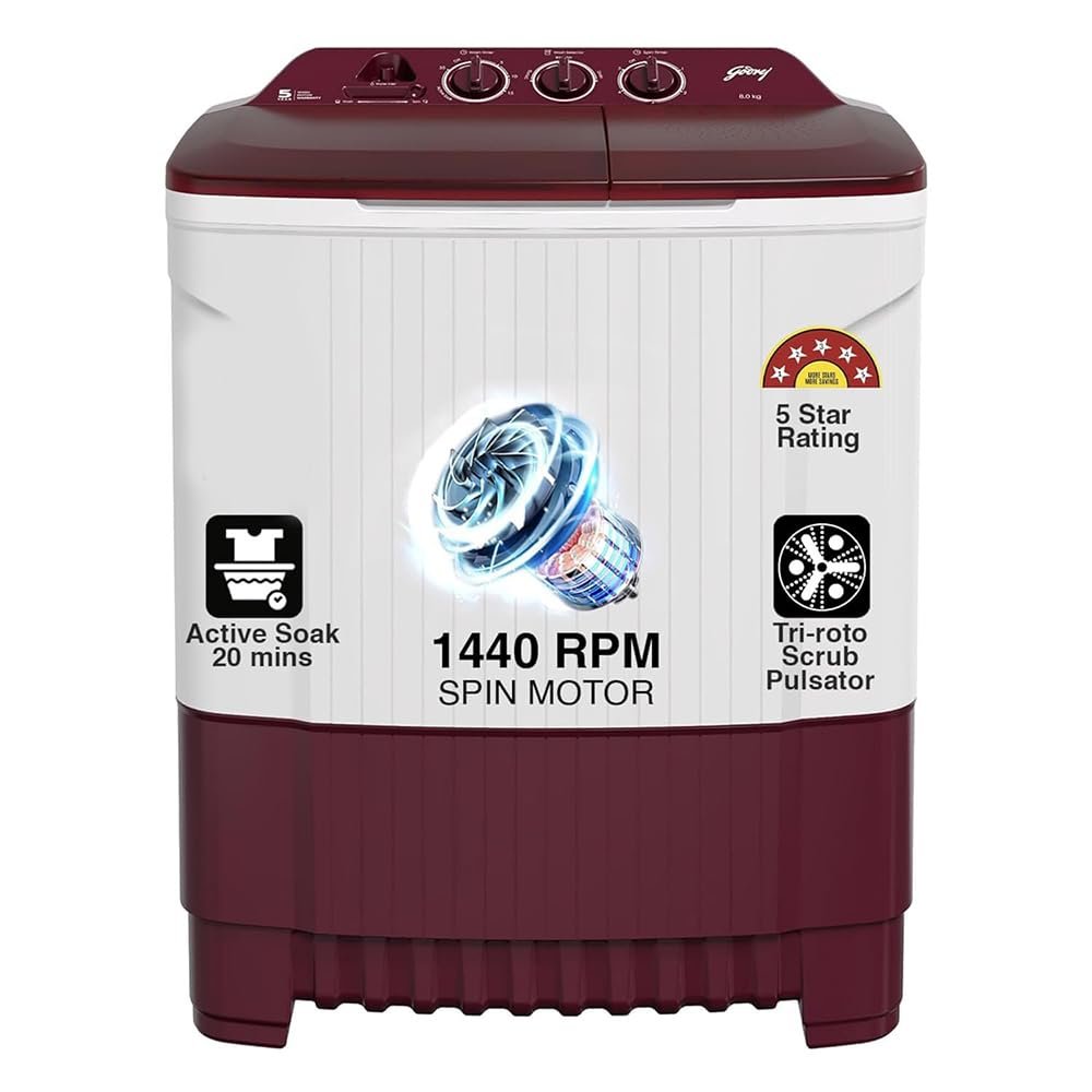 Godrej 8 Kg 5 Star Active Soak Technology Semi-Automatic Top Load Washing Machine (WSEDGE CLS 80 5.0 PN2 M WNRD, Wine Red, Wash Upto 8 King Size Bedsheets)